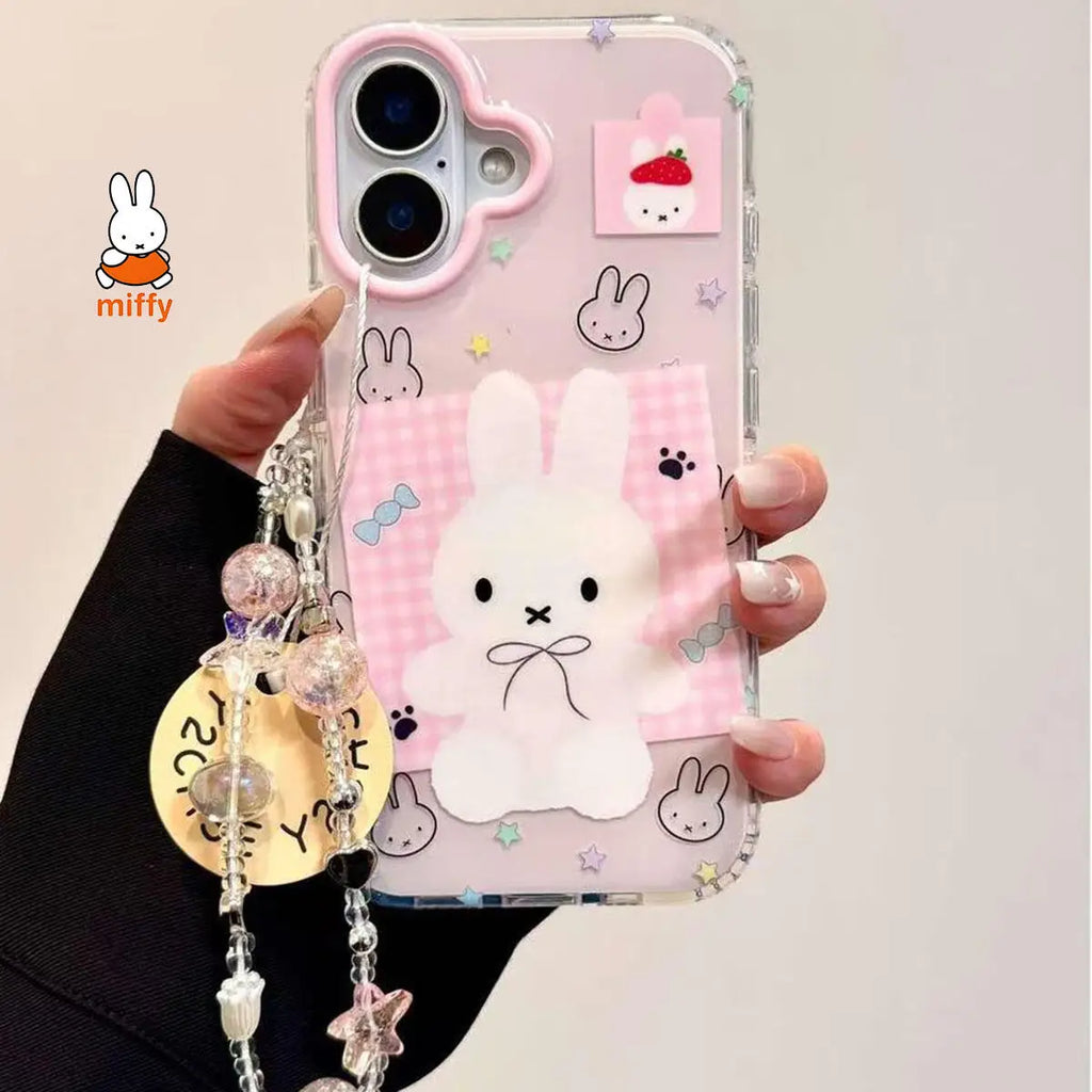 Protect your iPhone in adorable style with the Miffy Kawaii Cartoon Mobile Phone Case. Featuring a charming anime rabbit pendant, this case combines cute design with practical protection. Its lightweight build safeguards your phone from everyday bumps while adding a playful touch that stands out. Perfect for fans of kawaii aesthetics, it offers both charm and durability to keep your device safe and uniquely yours.