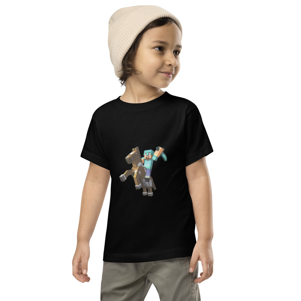 Dress your toddler in this comfortable and stylish short sleeve tee featuring an adventurous Minecraft Herobrine on a horse design. Made from premium cotton, this tee is perfect for active little ones who love gaming.