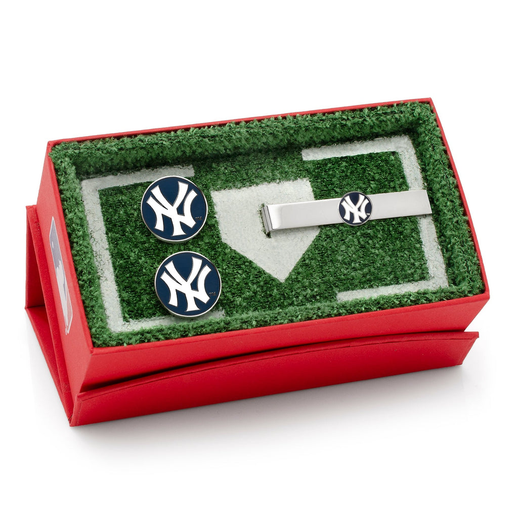 The perfect gift for the stylish baseball fan, the officially licensed New York Yankees Cufflinks and Tie Bar Gift Set includes a pair cufflinks and a matching tie bar with the team's logo. If your everyday attire consists of a suit and tie, these MLB accessories are the finishing touch to elevate your style while supporting your New York Yankees. Officially licensed by the MLB.