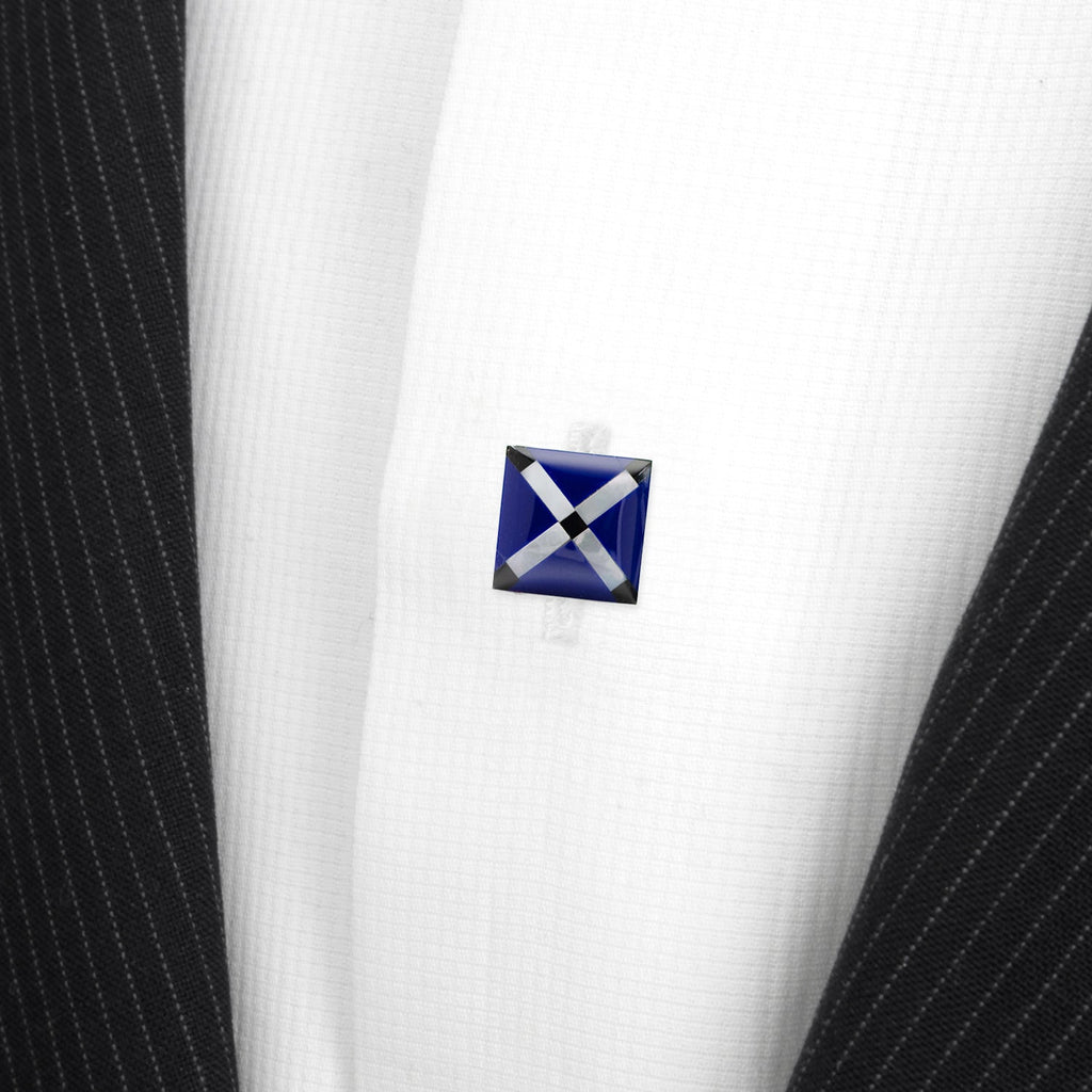 Dress to impress with our simple yet lavish Mother of Pearl Diamond Studs. The face of the studs are made with Mother of Pearl, Onyx, and blue stone set in an intricate diamond argyle pattern. The expert craftsmanship of our base metal studs ensures long-lasting durability. Pairs perfectly with our Mother of Pearl Diamond Cufflinks.