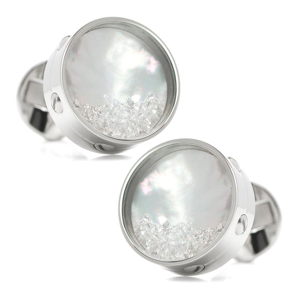 Wear a conversation-starter with our Mother of Pearl Floating Crystals Cufflinks. These beautiful iridescent cufflinks are sure to catch attention. The mother of pearl face shines through the light-capturing, floating crystals. You will leave a lasting impression on all of those around you. Our cufflinks will stand up to wear and maintain their sleek, shiny look thanks to being crafted from durable stainless steel.