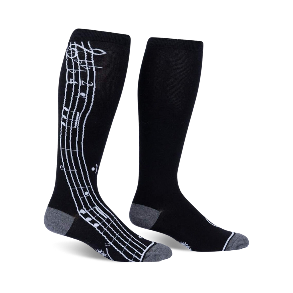 Pick up a pair of Musically Divine socks and make your feet the center of a symphony. These knee-high socks are adorned with a treble clef and ascending notes. They'll have you singing out loud and dancing barefoot in no time. Get some Music Is My Forte socks today and let those toes start twirling.