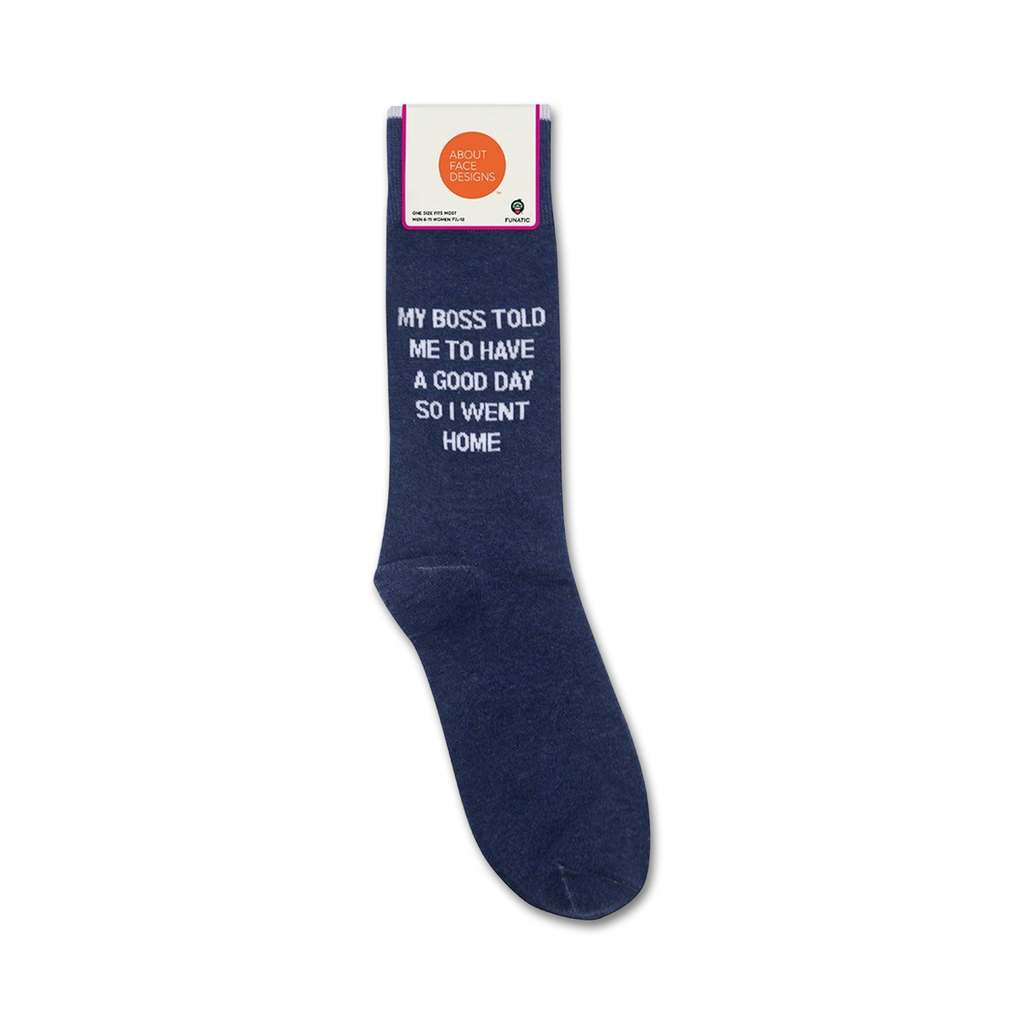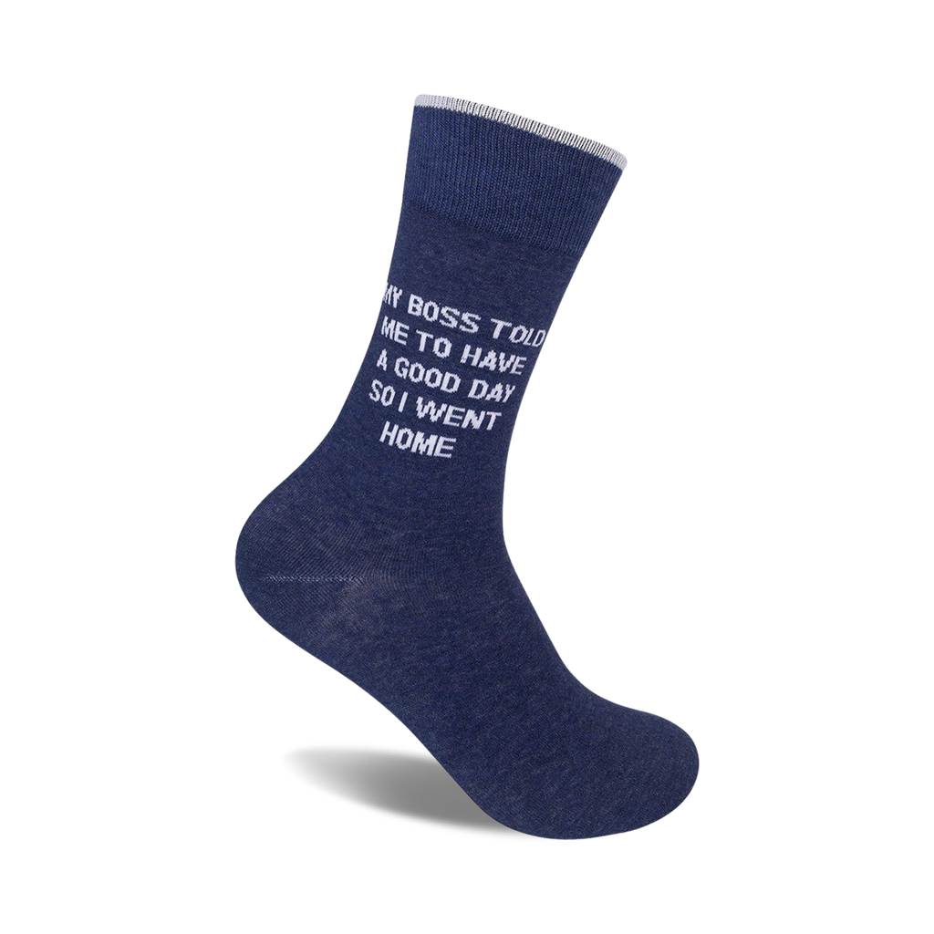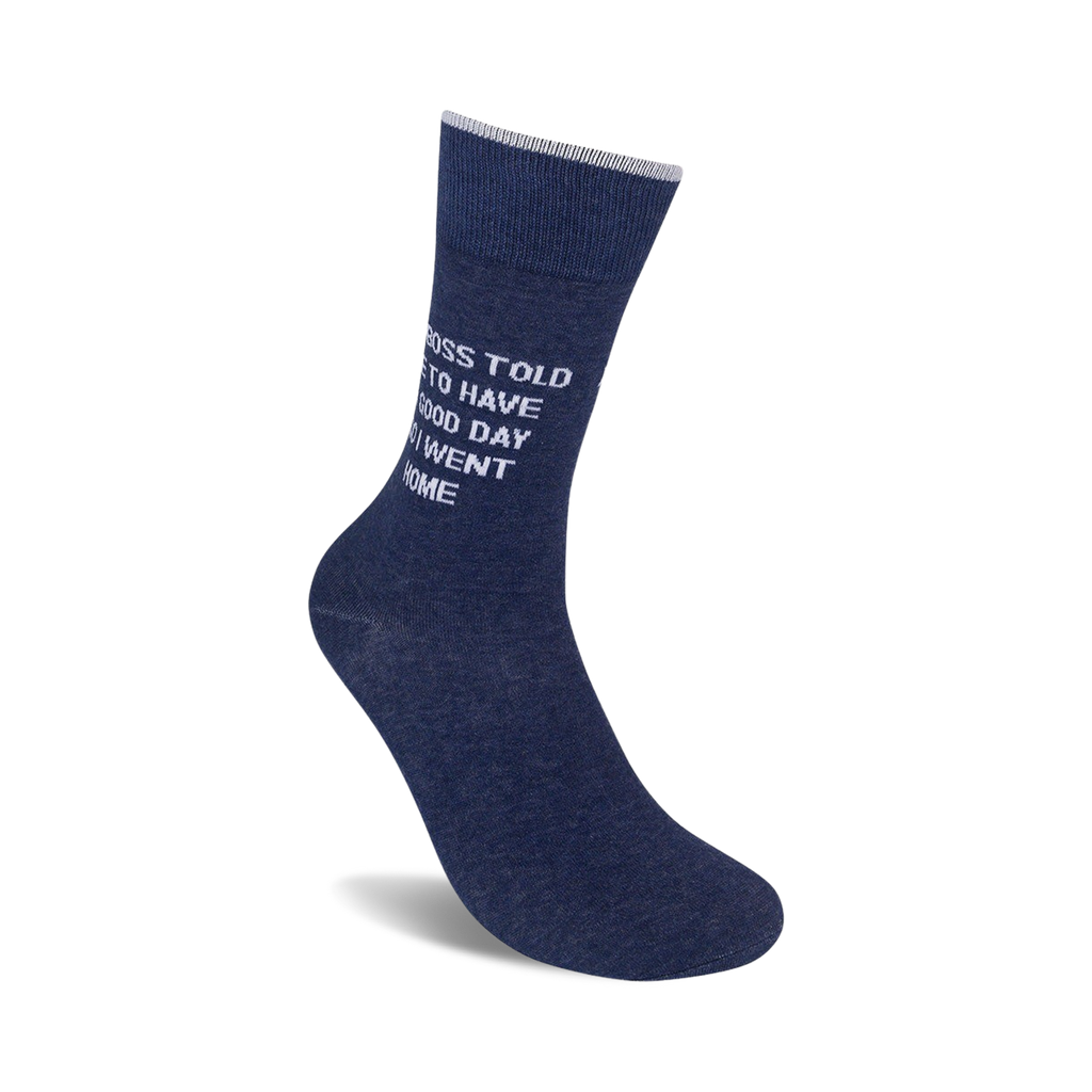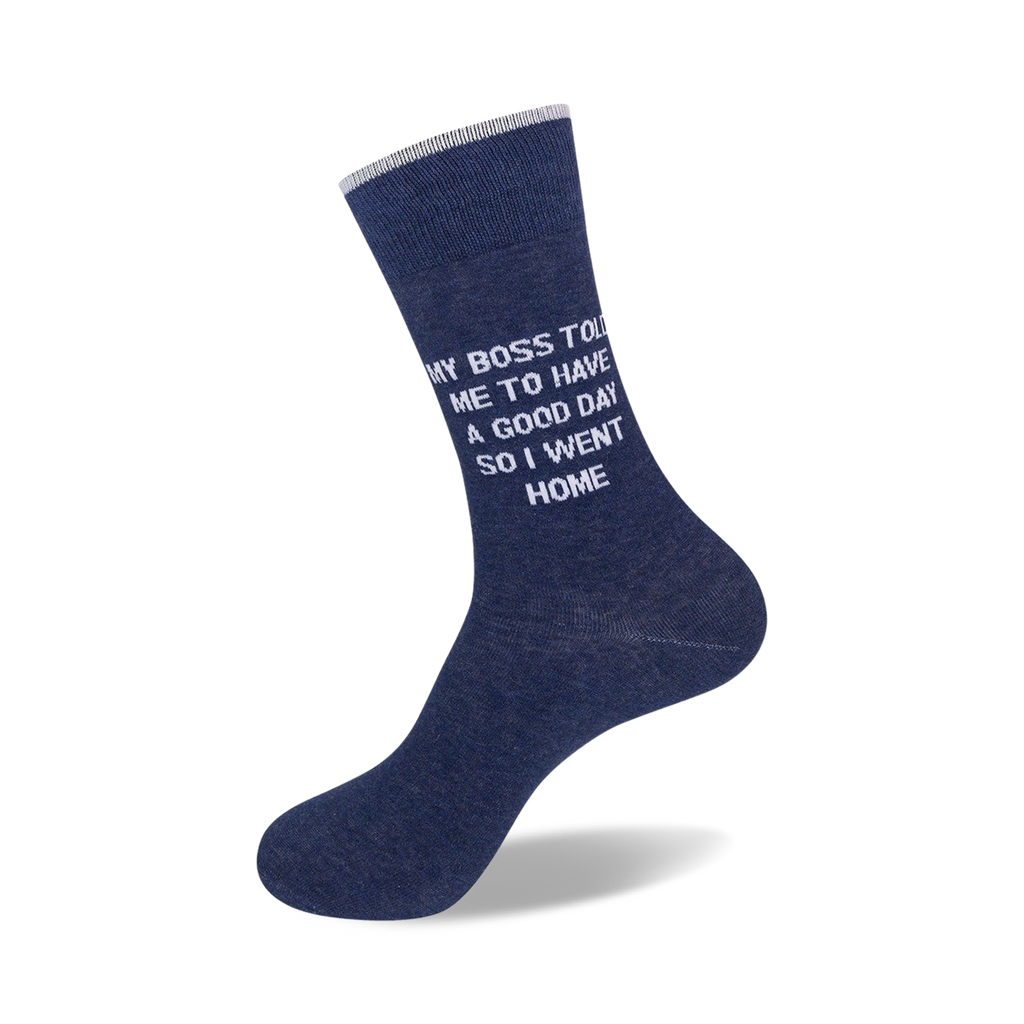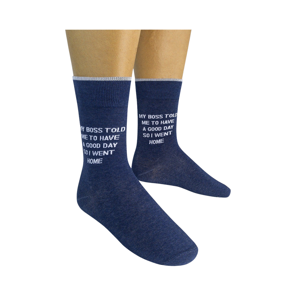 My boss told me to have a good day, so I went home...and put on these clever blue novelty office crew Mens' My Boss Told Me To Have A Good Day Socks. I'm not the only one who wants to scream at their boss! Celebrate the end of the workweek and wear these to let the whole office know how you really feel.