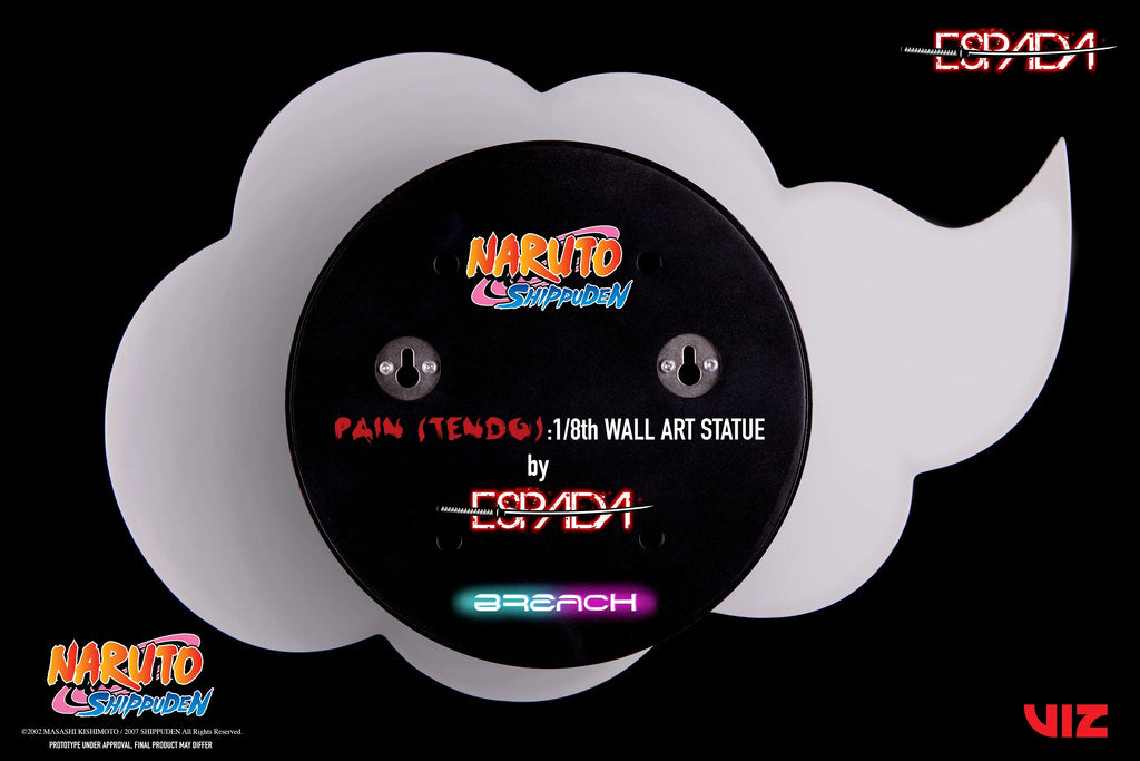 • “SHINRA TENSEI!” For our first Naruto Shippuden statue, we decided to portray the leader of the Akatsuki and Six Paths of Pain, Pain (Tendo). This overpowered antagonist is captured floating above Konahagakure and extending both hands out ready to use his ninjutsu attack, Shinra Tensei (All Mighty Push). For Pain’s base, we decided to have the iconic Akatsuki cloud symbol present behind him in a minimalist design. Pain hovers while looking forward with his Rinnegan as he looks to usher in his dream of world peace through pain to the violent shinobi world.