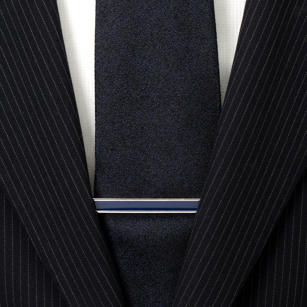 Wear the perfect shade of navy with the Navy Enamel Inlaid Short Tie Bar by Ox & Bull Trading Co.. Measuring at 2" length, the tie bar is the ultimate fashion statement. A sharp navy enamel is precisely painted and set in a shiny, silver setting. The Navy Inlaid Tie Bar was recently featured in Details magazine. Tie Bar by Ox & Bull Trading Co.