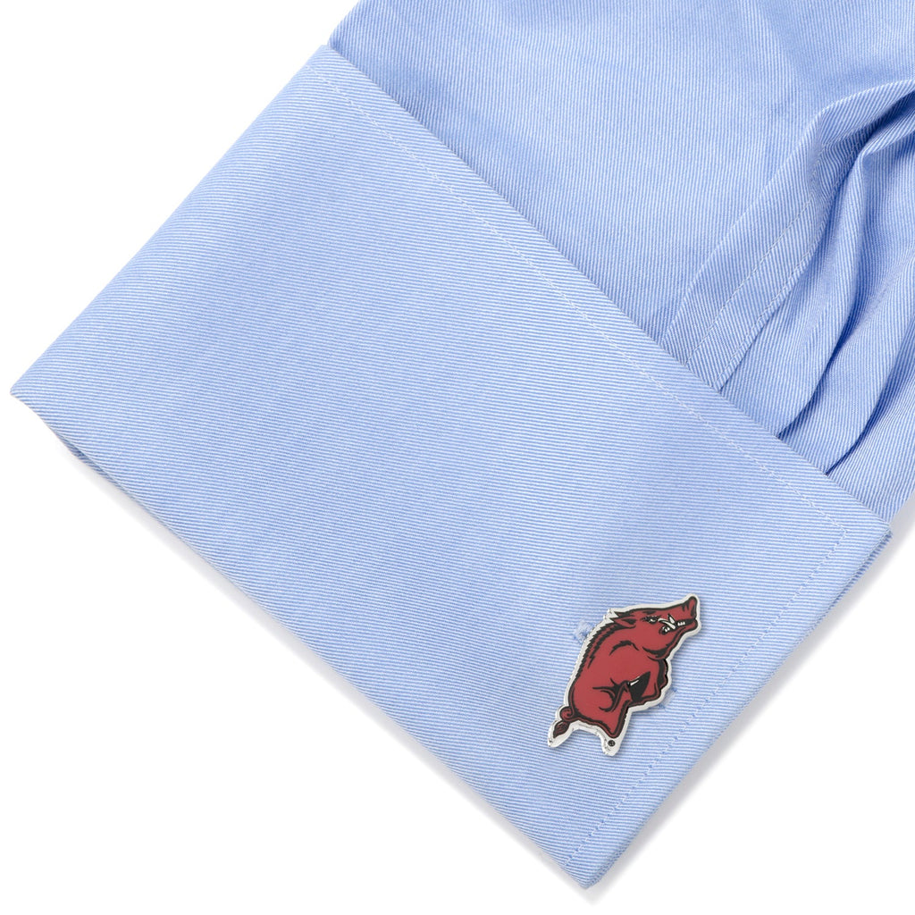 Represent your alma mater with the University of Arkansas Razorback Cufflinks, featuring the official logo of your favorite collegiate team. Great for the boardroom or game days, these cufflinks showcase the university logo in silver tone plated base metal with enamel details.. Whether you're in the stands rooting for a victory or watching the game on the big screen, root for your favorite team in style. Officially licensed NCAA cufflinks.