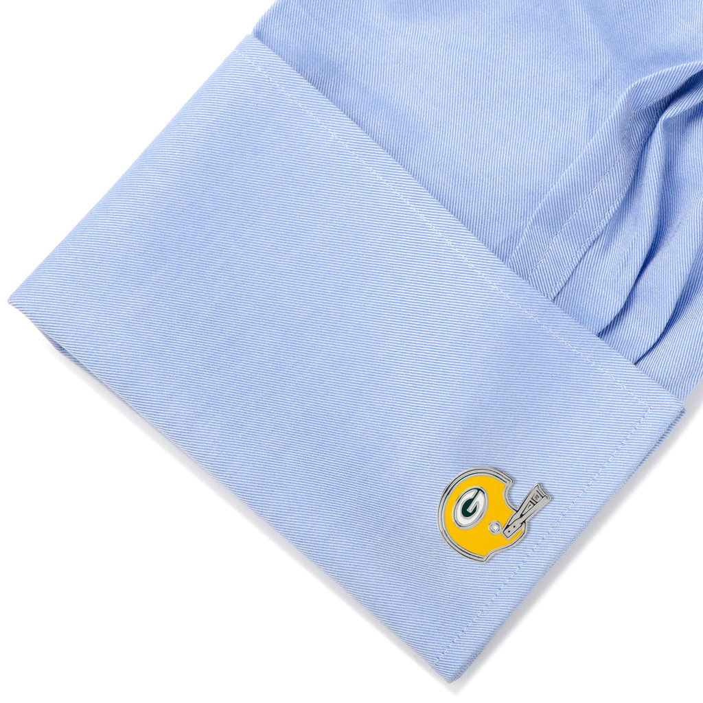 The vintage helmet inspired Retro Green Bay Packers Helmet Cufflinks are perfect for the lifelong Cheesehead, featuring the 70's style, double bar facemask helmet with the Packers logo. Officially licensed NFL cufflinks.