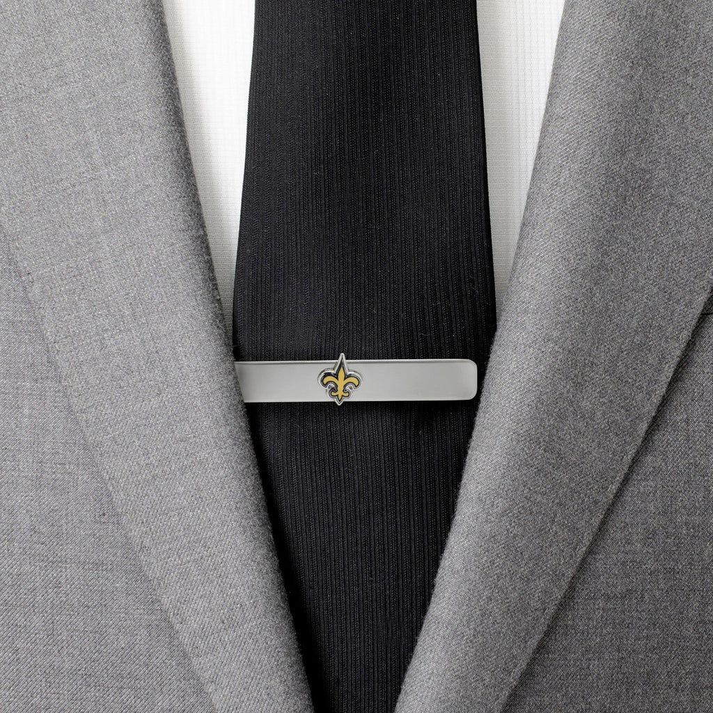 The perfect gift for the dapper football fan, this gift set combines officially licensed New Orleans Saints cufflinks and a matching tie bar. Great for the businessman whose everyday attire consists of a suit and tie, help him represent his team with elegant accessories that won't damper his look. Elevate your style with the New Orleans Saints Cufflinks and Tie Bar Gift Set. Officially licensed by the NFL.