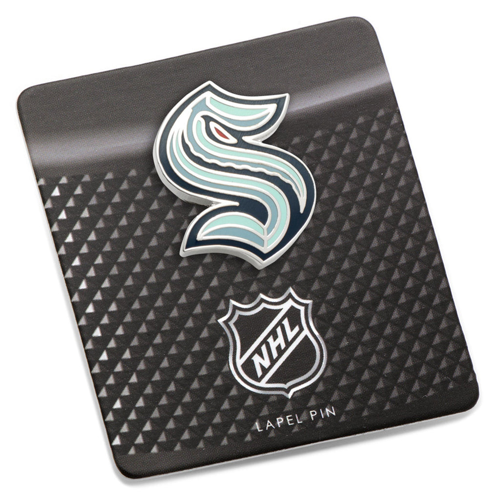 Represent the Seattle Kraken Hockey Team with this lapel pin bearing the Kraken's logo! Made from stainless steel, a navy blue tentacle slithers up the sea and ice blue "S" to a pop of red. Celebrate this hockey team and display their logo proudly on your lapel! Officially licensed by the NHL.