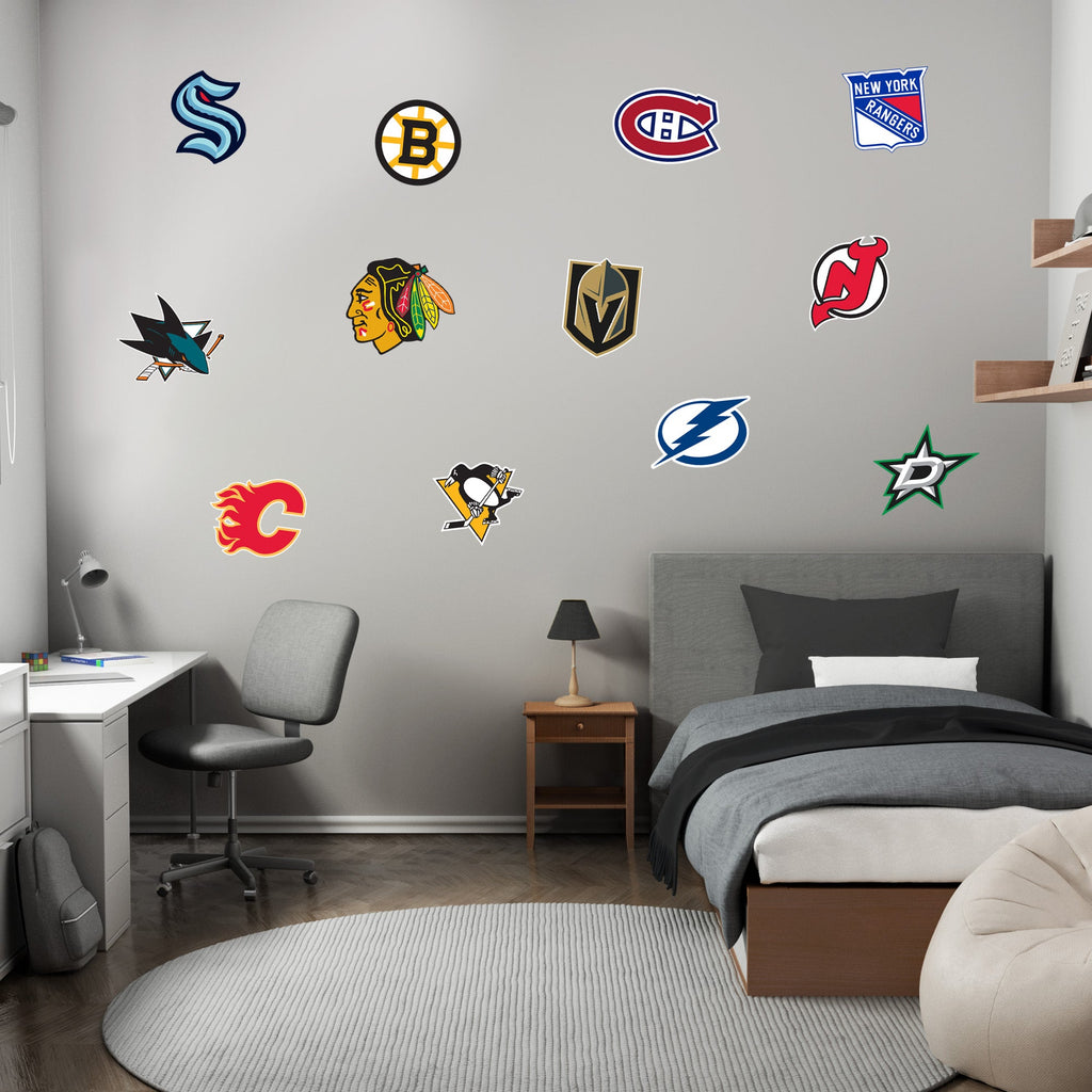 Transform your space into a vibrant hockey haven with the RealBig NHL Team Logos Collection, featuring all 32 official NHL team decals. Crafted from premium vinyl, these decals bring bold, fade-resistant colors that stay vivid for years. Their gentle adhesive makes them easy to apply, reposition, and remove without damaging walls. Perfect for fans, they add a dynamic touch to bedrooms, offices, or any room, celebrating team spirit and creating a lasting impression of your passion for the game.