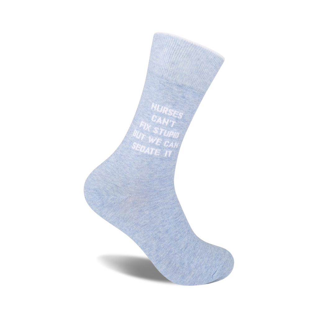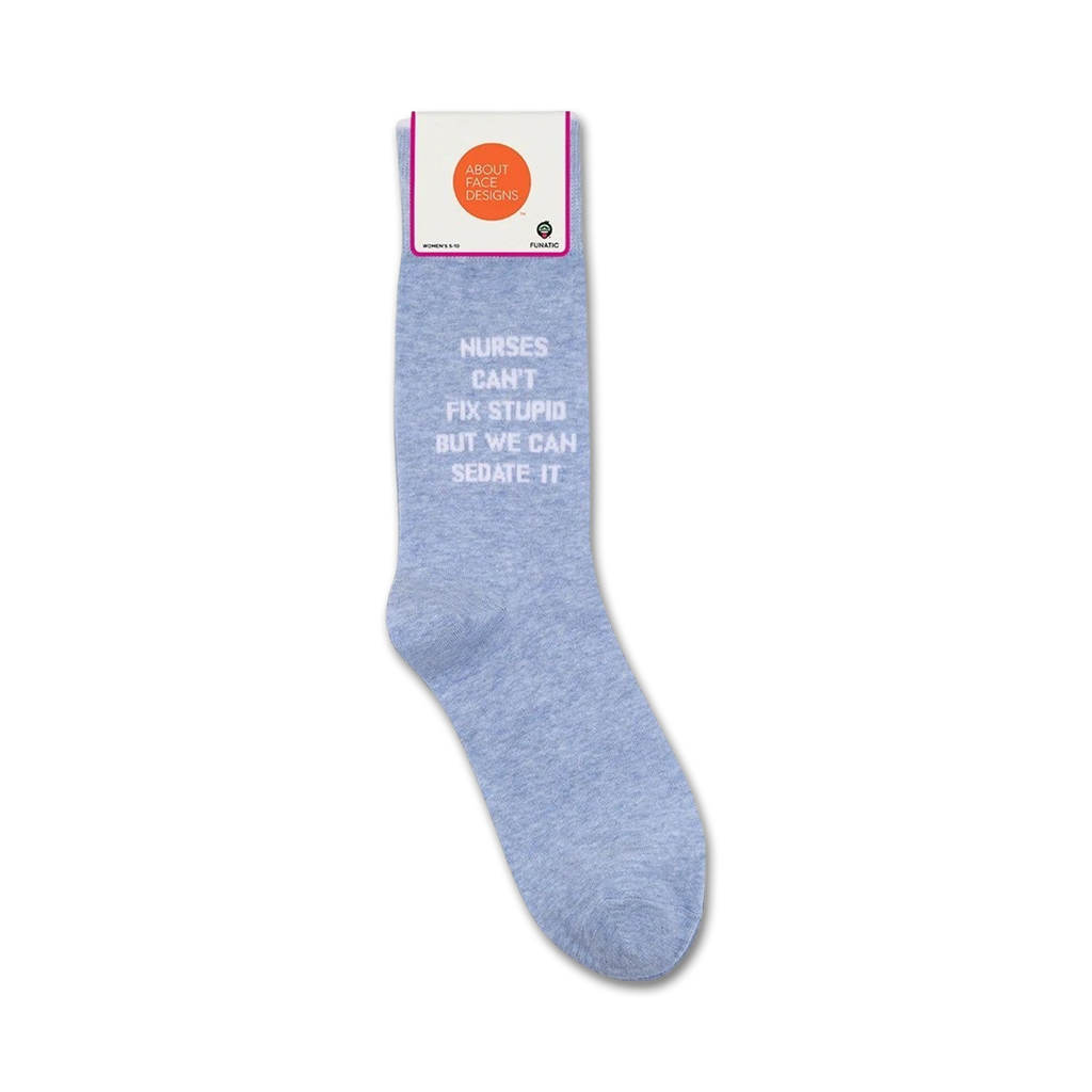 Love your job as a nurse but tired of the same old boring scrubs? Our Nurses Can't Fix Stupid, But We Can Sedate It socks are here to bring a much needed dose of hilarity and sass to your shift that will give patients and colleagues a much-needed chuckle. These socks are perfect for spreading a little bit of positivity and morale to all you encounter.