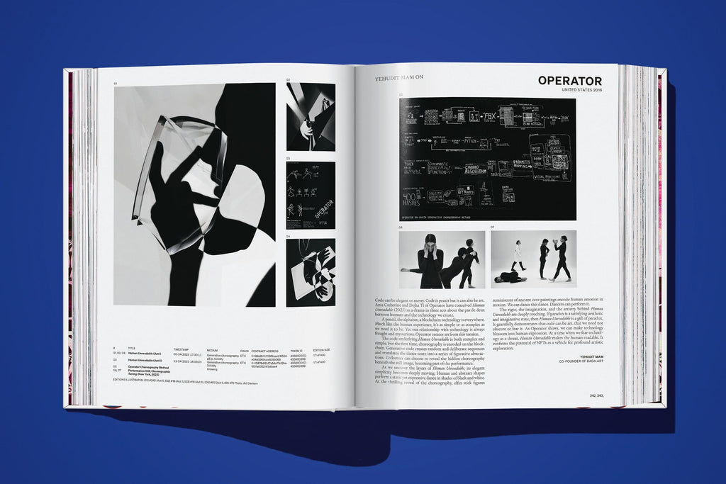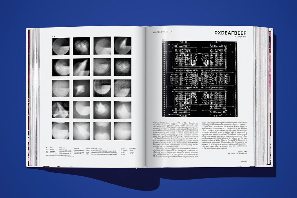 Encompassing the entire NFT ecosystem from algorithmic art to avatars and AI, the first major art historical survey of this field is now available in an updated, unlimited edition and includes 11 additional artists. With 10 academic essays and 111 artists in total, the book offers an extensive insight into digital art on the blockchain today.