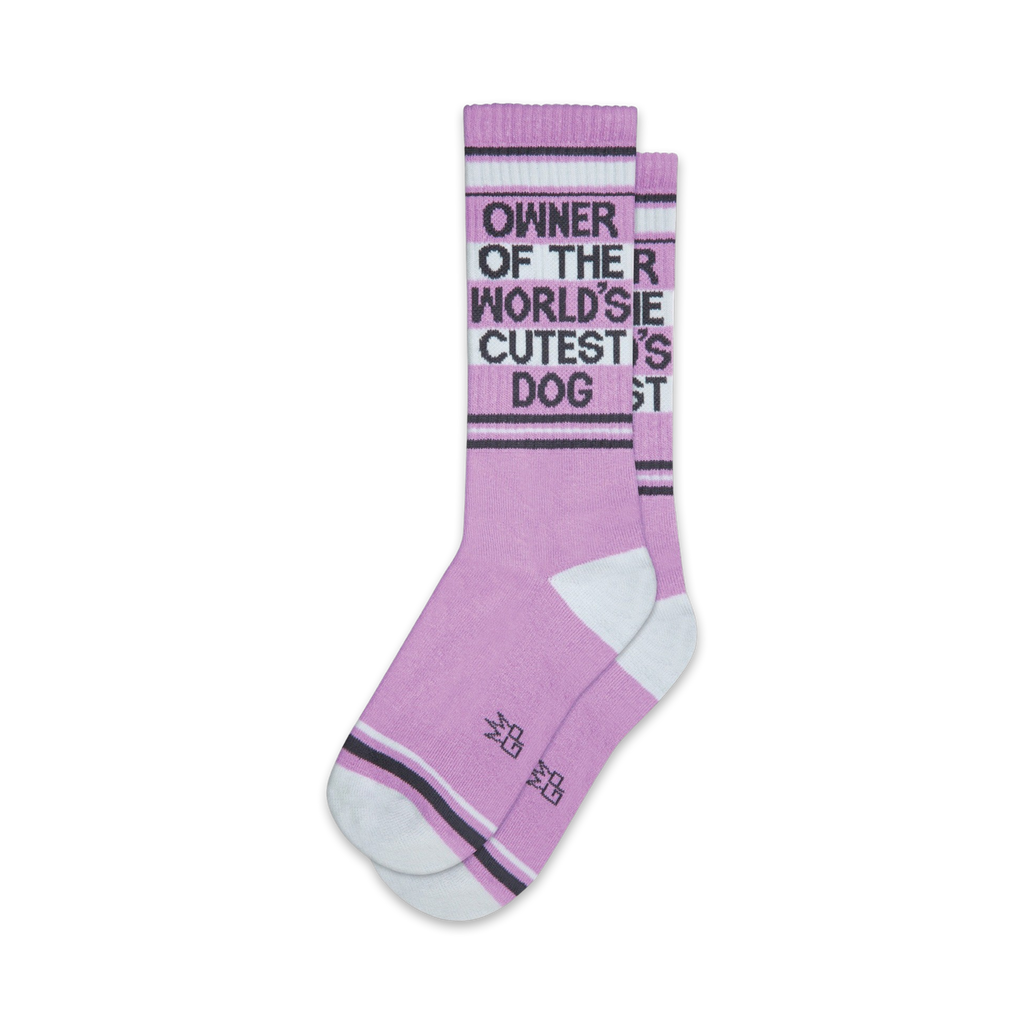 We've got socks that'll make you the envy of all dog owners! Our "Owner of the World's Cutest Dog" socks in lavender, proudly proclaim your fur baby's cuteness to the world. These Crew socks are perfect for men and women who want to show off their love for their four-legged friend.