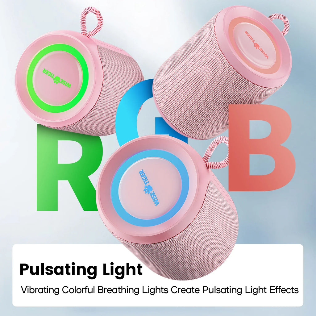 WISE TIGER P1S Pink Mini Portable IPX7 Waterproof Bluetooth Speaker, the best gift for family, loved ones, friends, and children