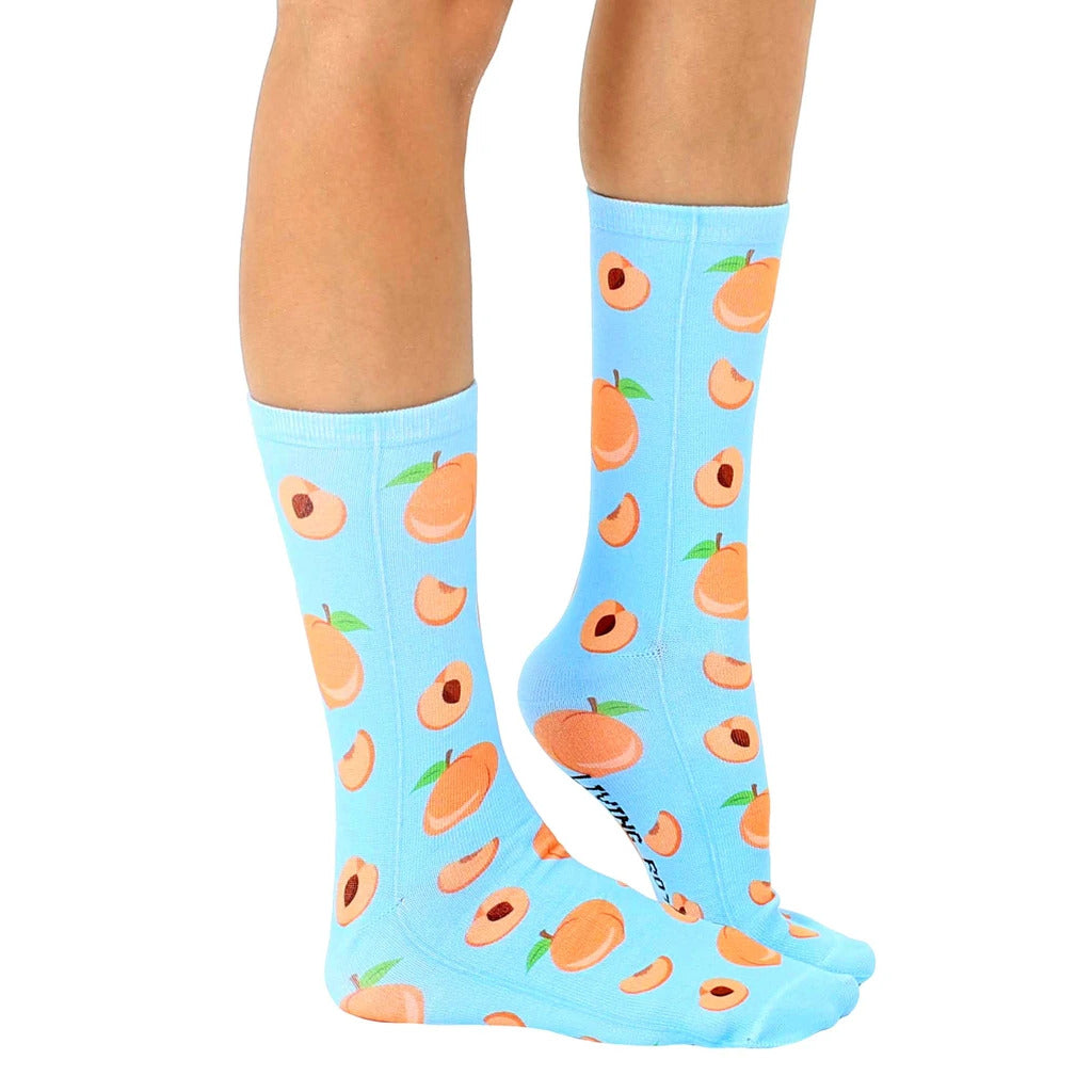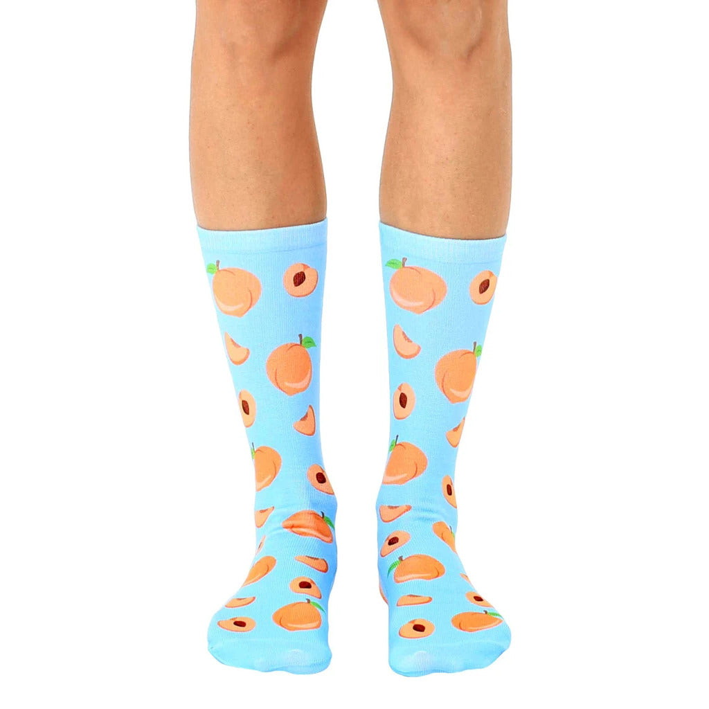 Calling all peachy people! Glide into these Blue Peach Crew Socks that will turn you into the juiciest snack in town. Prepare for a blast of laughter and endless compliments as you tiptoe through life with these socks on. They're the perfect conversation starter, so get ready to dish out some fruity fun facts. We bet you'll be the life of the party, spreading smiles and giggles wherever you go!