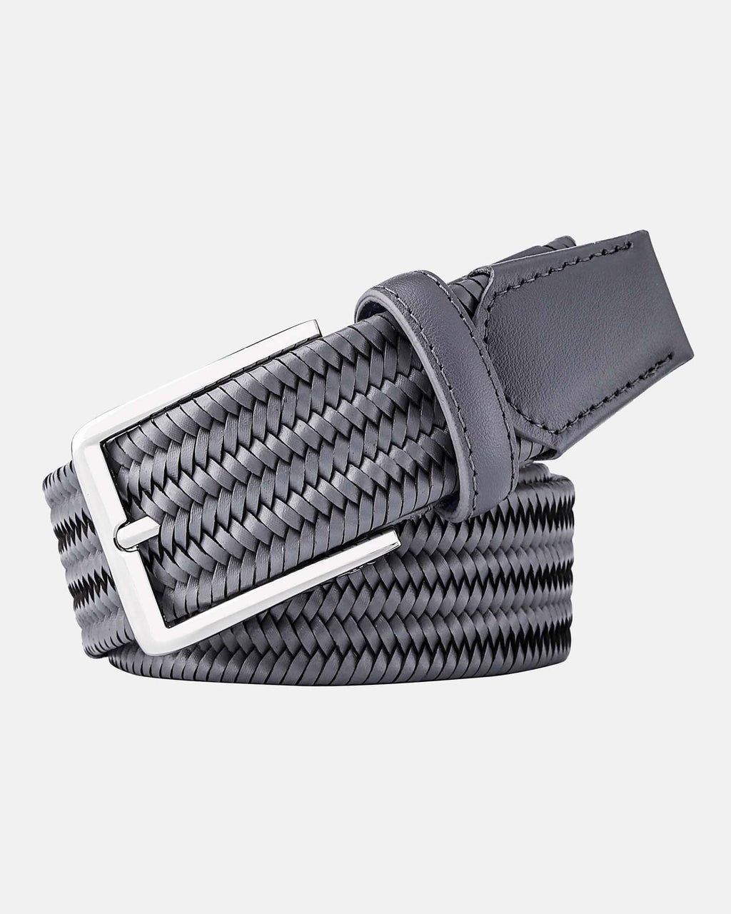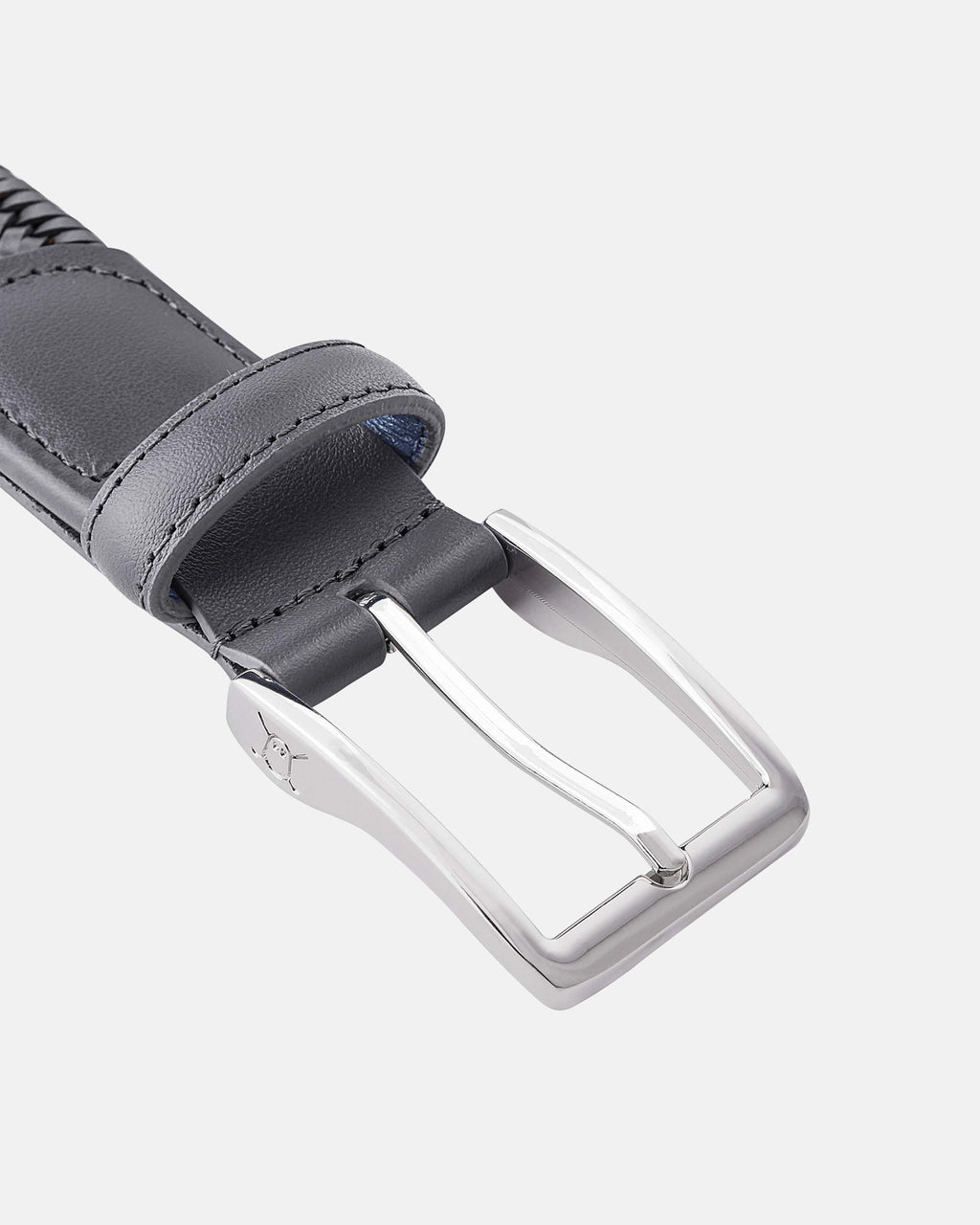 - Gray Regenerated Italian Leather Belt with Custom Steel Buckle