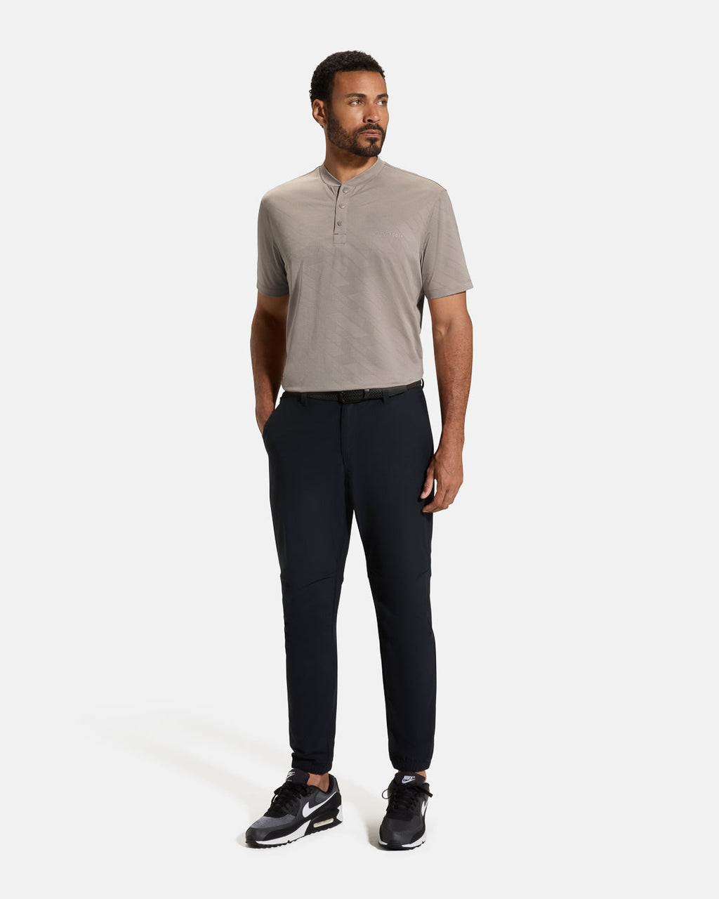 Featuring a classic banded collar with modern snap buttons, it offers a contemporary update to a timeless design. The split side seams provide added comfort and mobility, making it perfect for your swing or post-round relaxation.