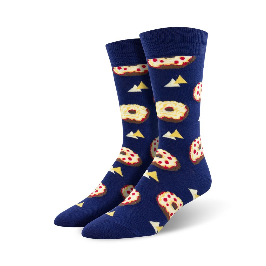 Pizza Bagel socks: One bite and they're your new favorite! These groovy blue socks feature an all-over pizza print. The photorealistic design will have everyone looking at your feet. Don't blame us if people start to crave some pizza cuz these socks are saucy!