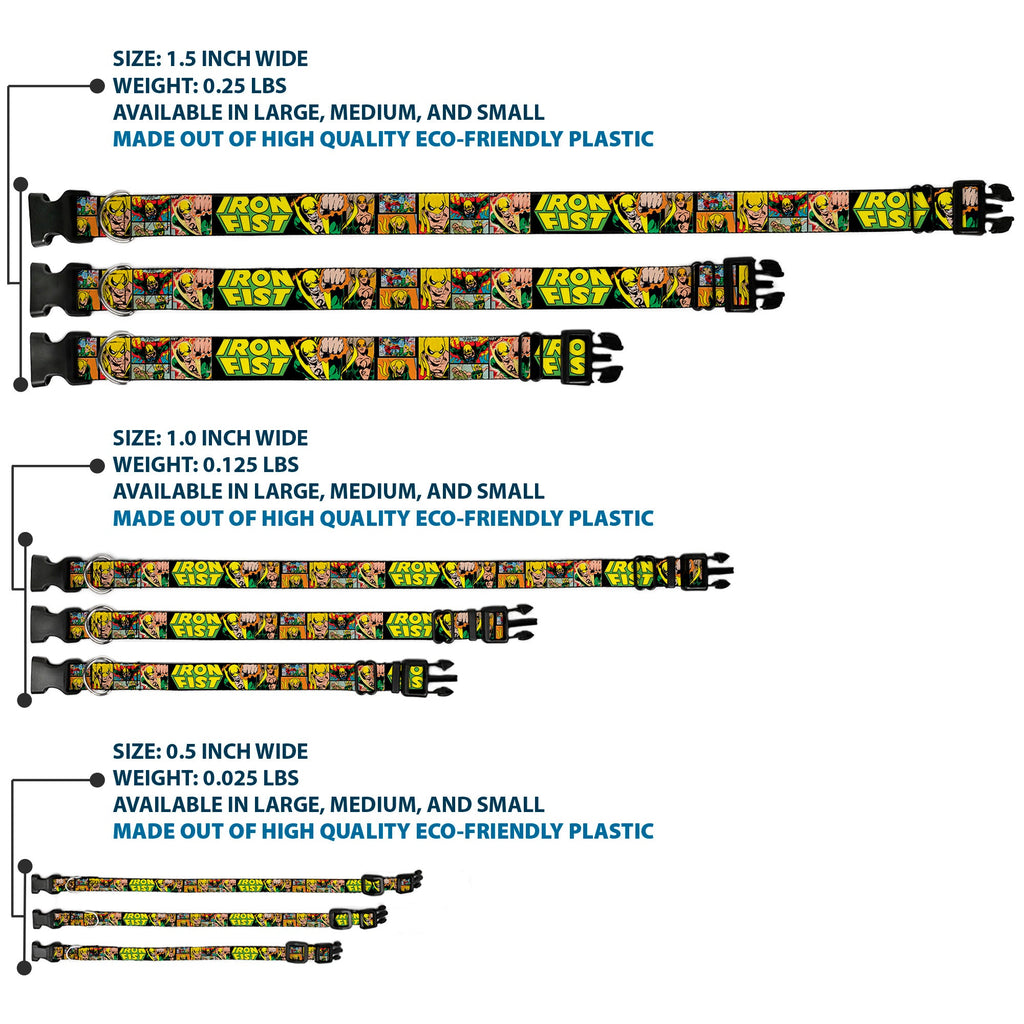 Vibrant and bold, this beautiful, polyester dog collar is made to show off your dog's unique style through all the seasons. With an overengineered plastic buckle and strong D-ring, this durable collar can hold up to whatever your dog can dish out. This product is officially licensed by Marvel Comics.