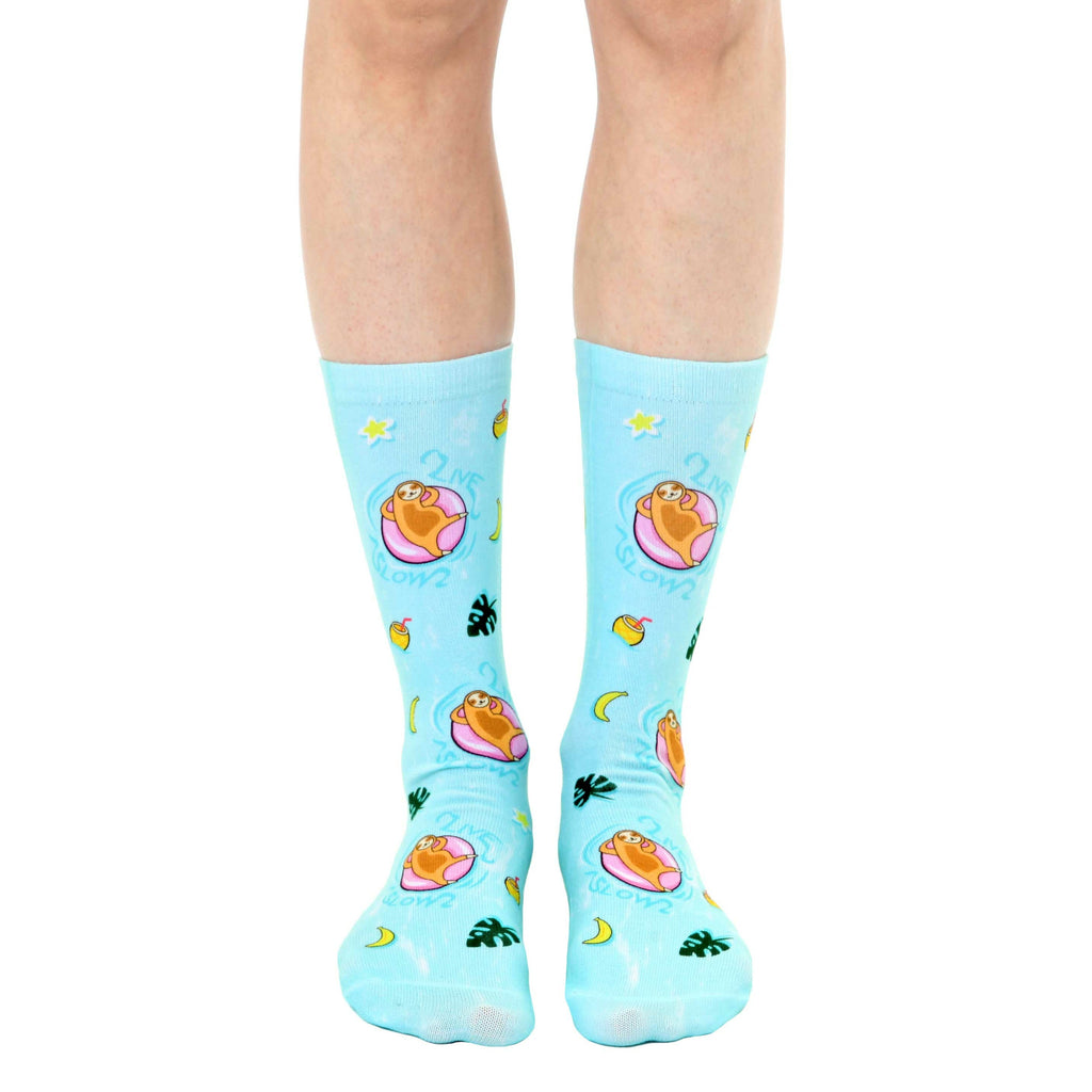 Float away in sloth style with our Pool Sloth socks! Picture this: blue skies, palm trees, inner tubes, and sloths wearing shades and leis. These socks are like a tropical vacation for your feet. Bonus: sloths are known for chilling, just like you will be in these socks.