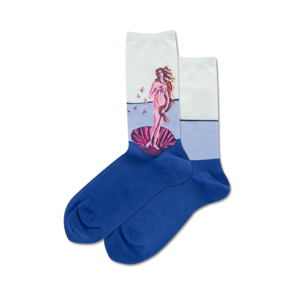 Introducing the Pop Birth of Venus socks! Painted across a vibrant blue background are divine masterpieces that will keep your feet feeling blessed and artistic. These socks will have you stepping through history one foot at a time, and with every step, people will be saying "Venus who?"