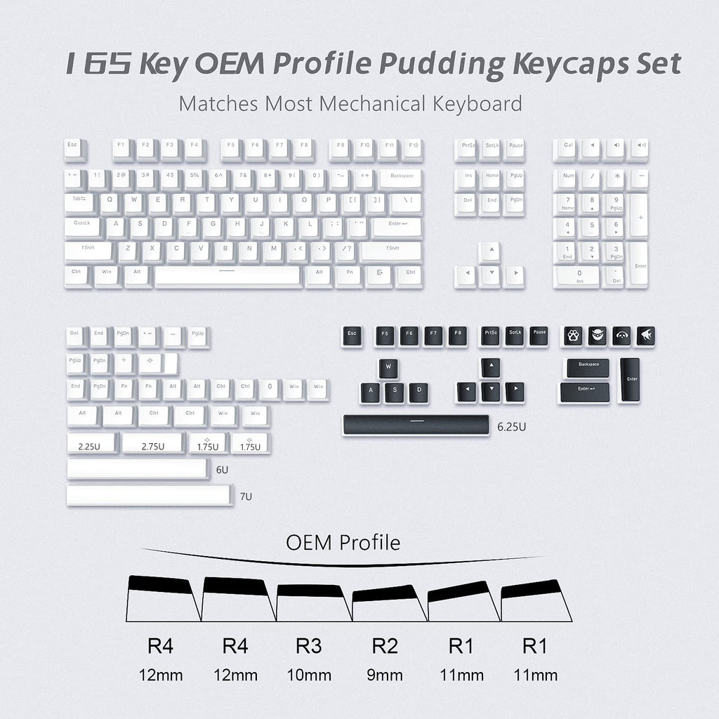 Pudding keycaps set features 141 Keys plus 24 brand-exclusive extras, granting total compatibility with 100%, TKL, 65%, and 60% keyboards for maximum versatility.