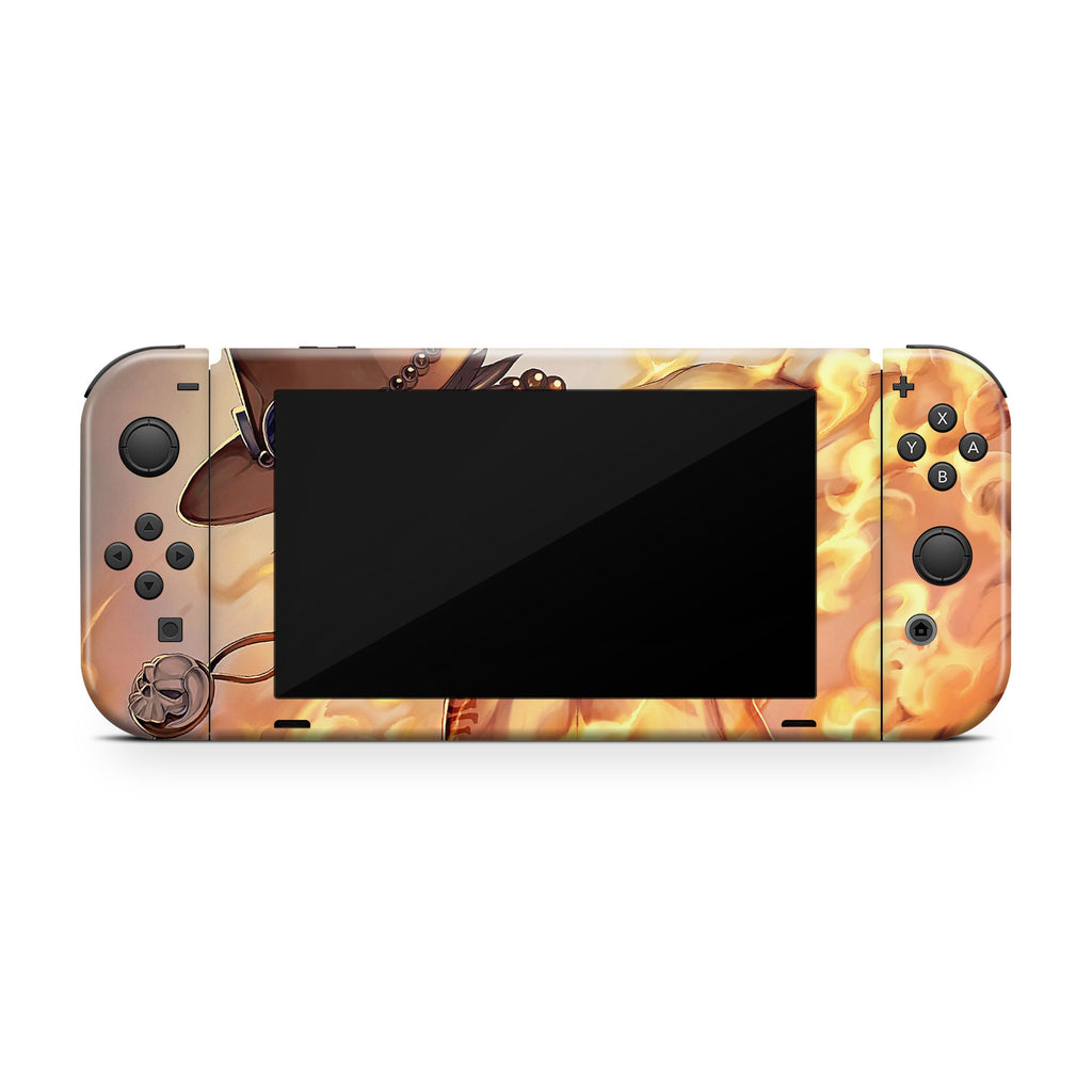 Ignite your adventures with the Pyro Nomad vinyl skin for Nintendo Switch. This striking design, inspired by a legendary pirate, blends bold visuals with reliable protection for your console.