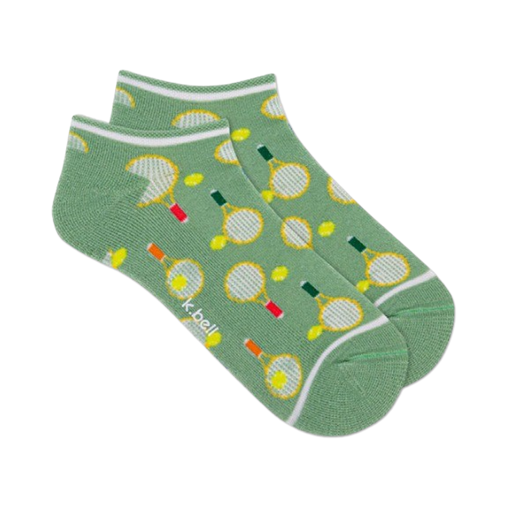 Racket Repeat: Ace Your Style Game! Tennis fans, get ready to up your sock game with Racket Repeat! These ankle-length wonders are a sporty serve, featuring a lively pattern of tennis balls and rackets. Get ready to volley for compliments whenever you step out in these eye-catching kicks! The vibrant green hue will keep you feeling fresh, while the durable fabric ensures you're always ready to hit the court in style.