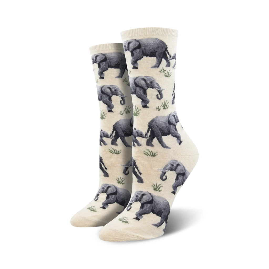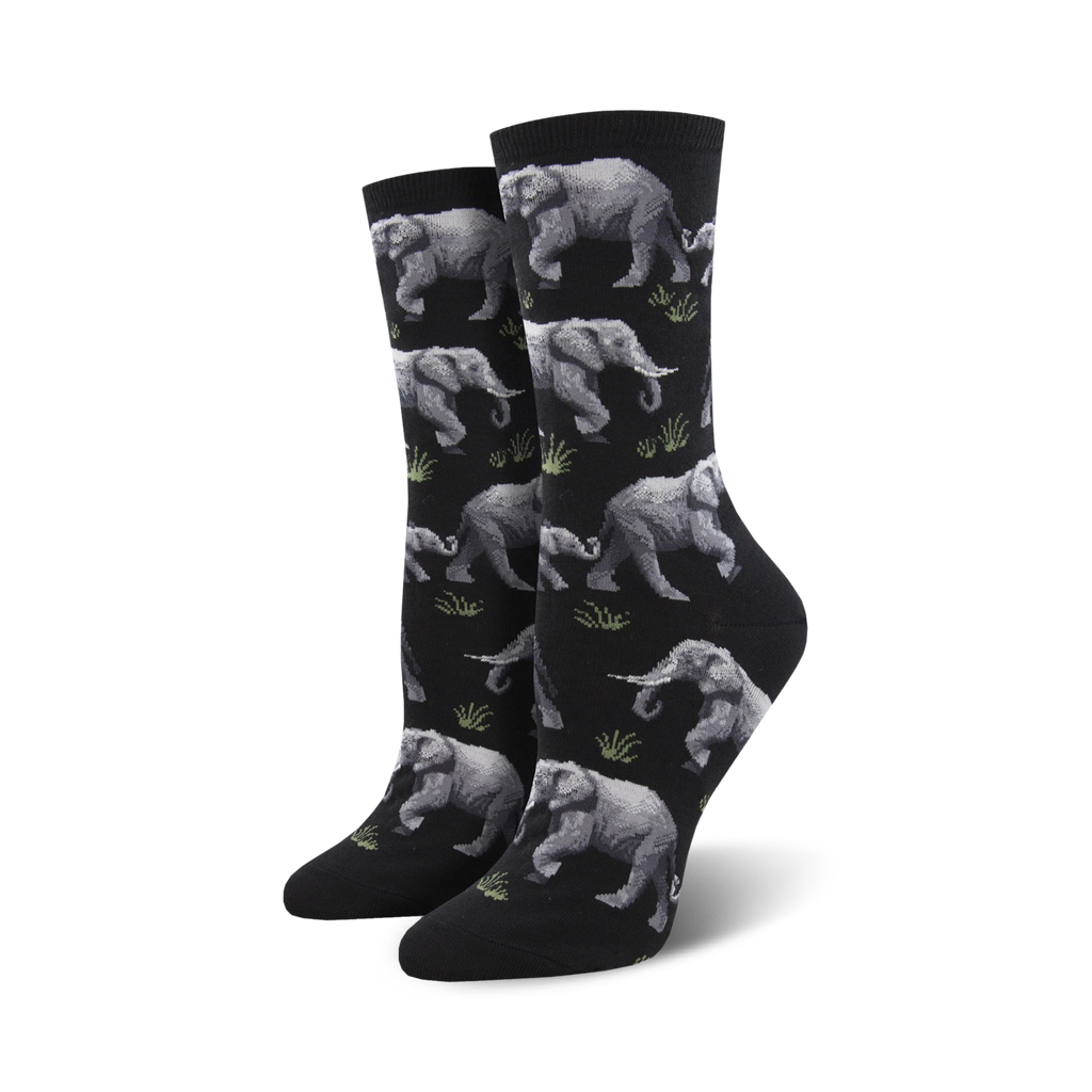Take a jumbo-sized step into the wild and let your feet make a statement with our Raising A Herd socks! These exclusive crew socks offer a parade of gray elephants marching toward adventure on a black background, set amidst green patches of grass. Let your toes embark on a safari and discover the herd's boundless spirit. Don't be afraid to let your wild side take the spotlight with Raising A Herd socks!