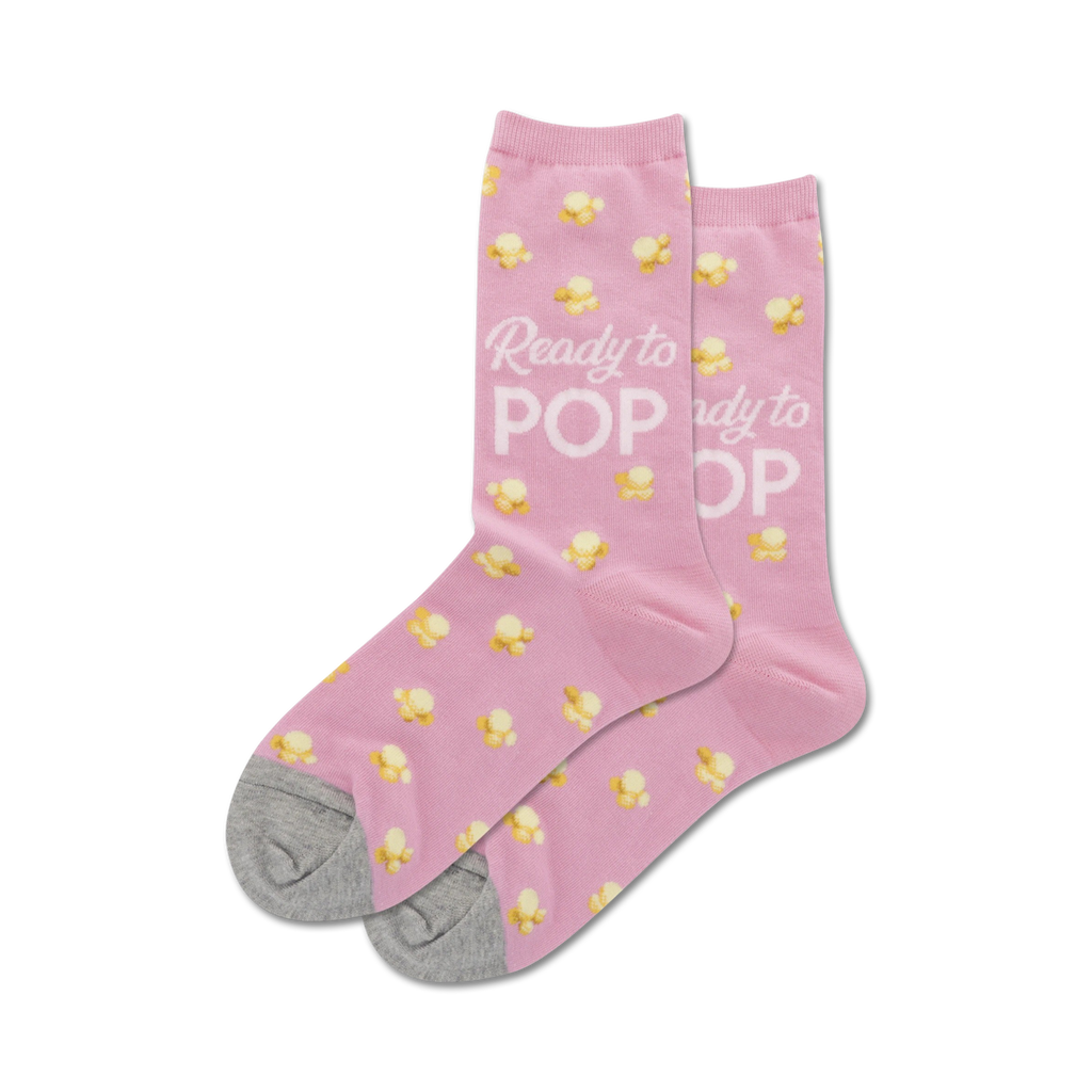 These "Ready to POP" socks are bursting with fun! Show off your popcorn pride with these bold pink women's crew socks. Corn-y jokes optional.