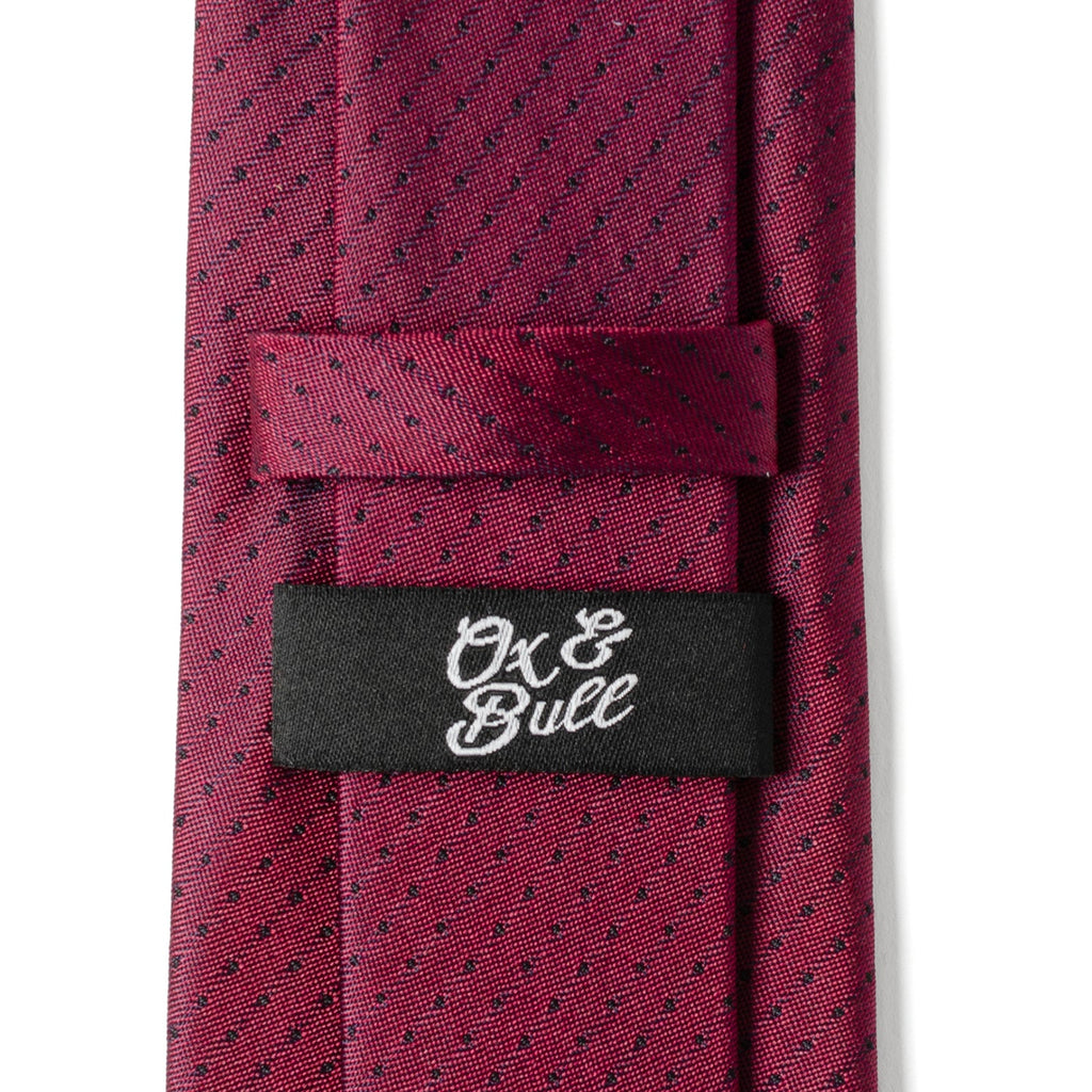 Designed with a perfect balance of simplicity and quality, this burgundy tie features a traditional black pin dot pattern. A fashion forward design for classic and modern gentleman alike. Our tie will maintain its shape and hold a perfect knot thanks to the durable yet soft 100% Silk. A versatile tie that can be added to any outfit and worn for both casual and formal occasions.