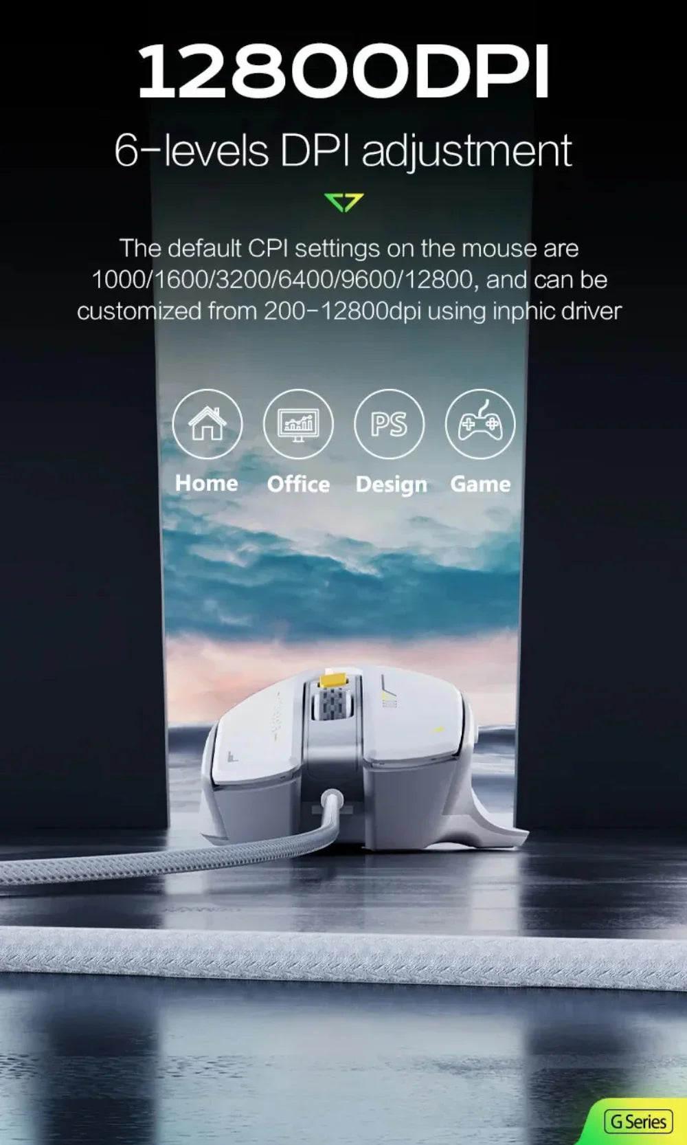 Transform your gaming setup with a spectrum of vibrant RGB lighting options. Customize the mouse's lighting to match your style, your game, or your mood. Choose from a range of dynamic effects, from pulsating waves to solid colors, creating an immersive and visually stunning gaming atmosphere.