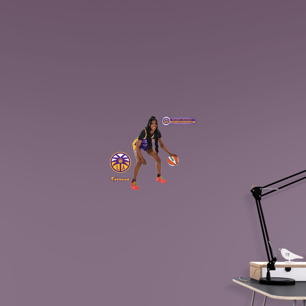 Designed for easy installation, these decals use a low-tack adhesive that allows for effortless application, repositioning, and removal without damaging your walls. Whether you're decorating a game room or personalizing your living space, these decals offer a customizable, commitment-free solution. Imagine the excitement of having life-size images of your favorite athlete, Rickea Jackson, energizing your environment. Embrace the spirit of the Los Angeles Sparks and let your walls tell your story.
