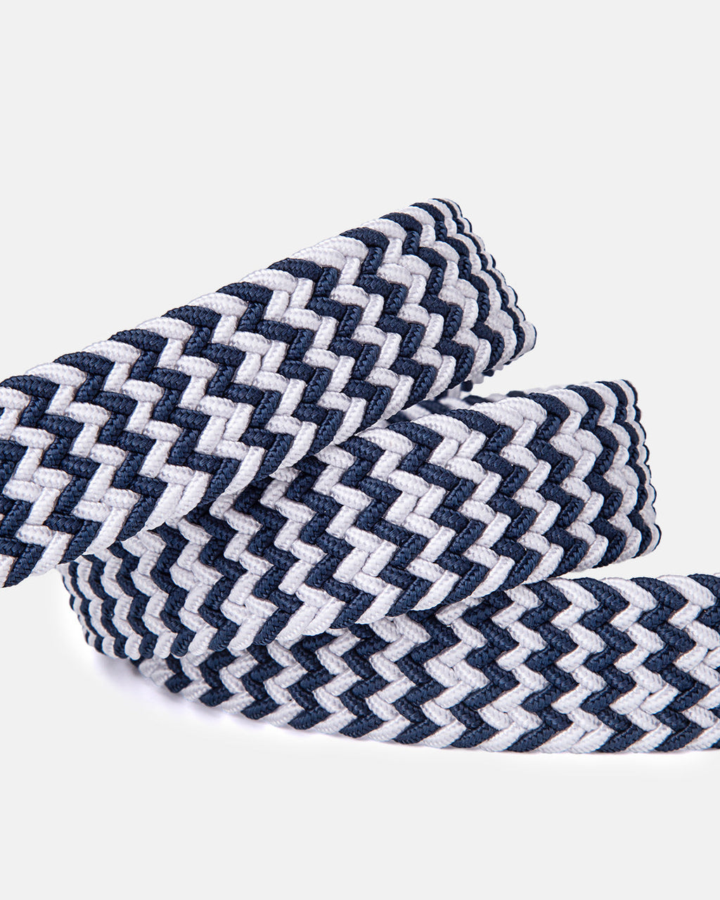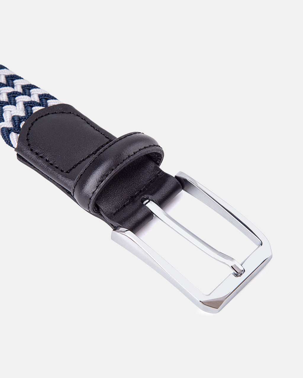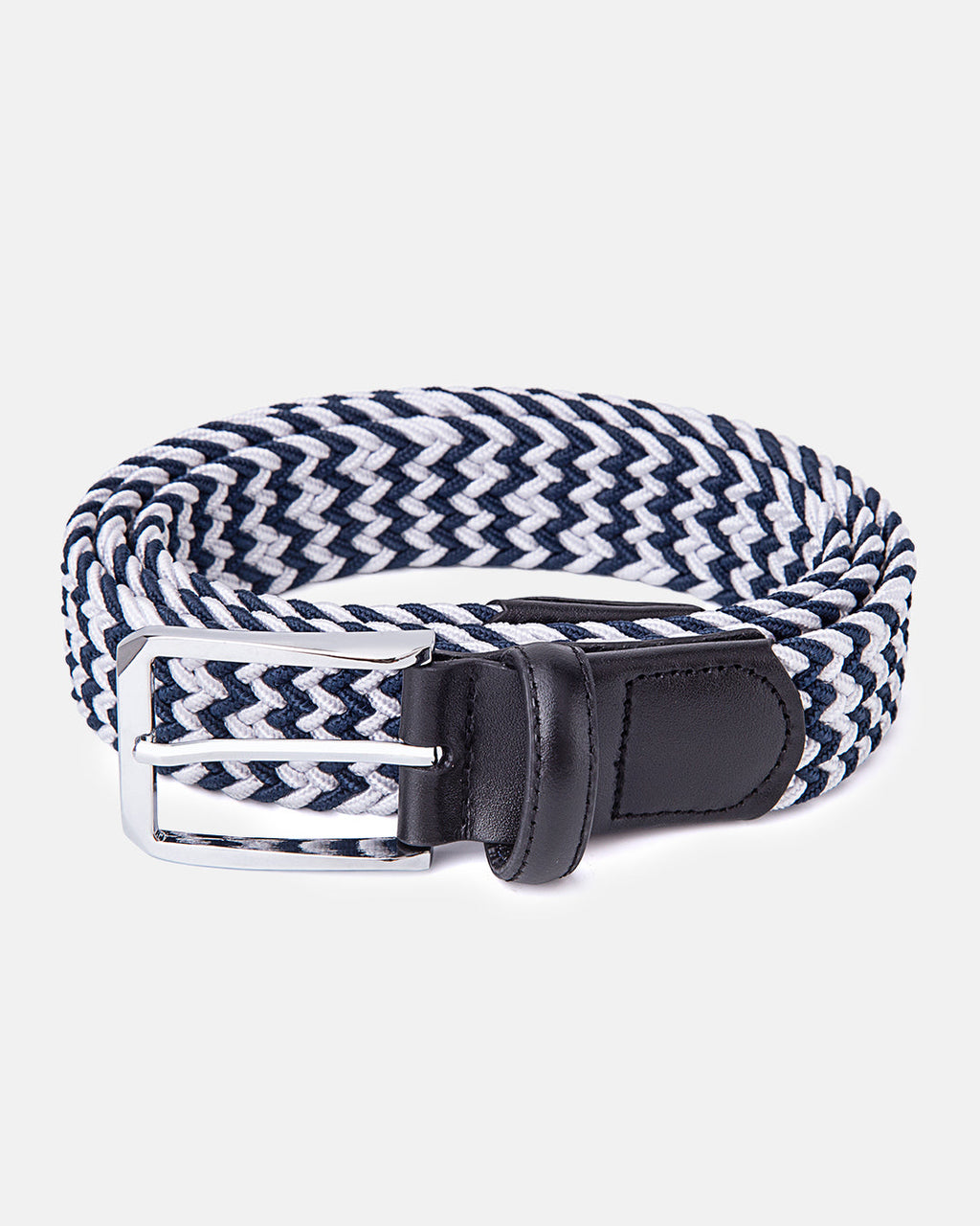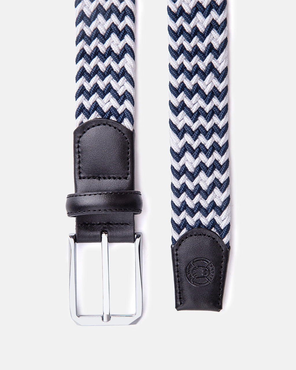 - Navy/Off-White Belt with Steel Buckle and Black Leather tail with Logo