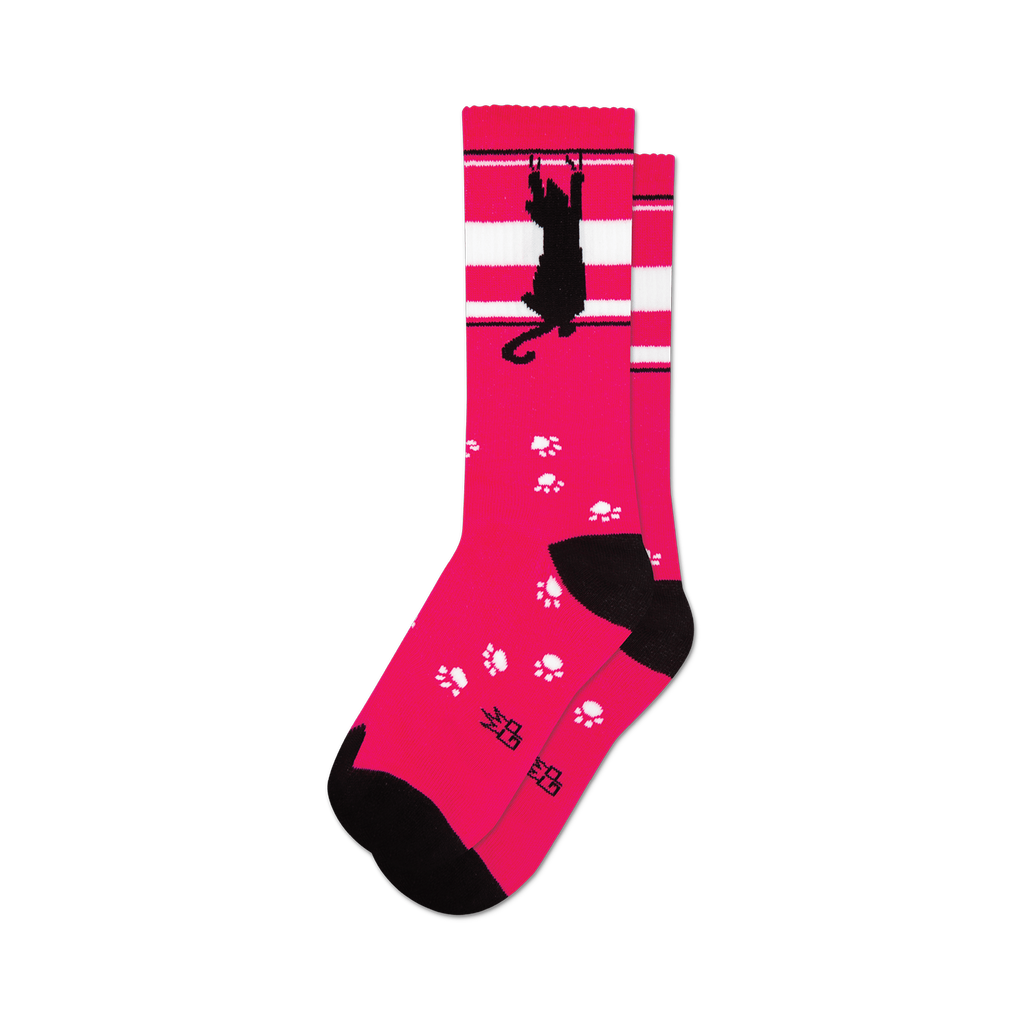 Elevate your style with our pink Scratching Black Cat socks, ideal for both men and women. Fun and eye-catching!