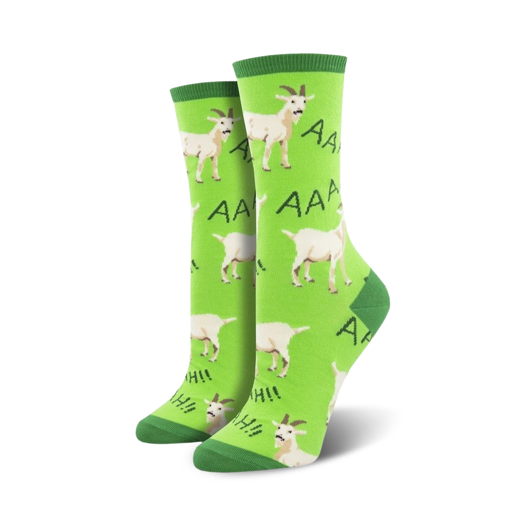 Get ready to have some baaa-d vibes in these Screaming Goats socks! These green crew socks feature a hilarious pattern of cartoon goats standing on their hind legs with their mouths wide open as if they're screaming at the top of their lungs. Put on a pair of these wacky socks and let the goats do the talking for you. Fun fact: Did you know that goats can scream like humans? Well, now you do thanks to these screaming goat socks!