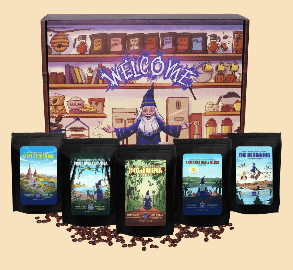 Experience different parts of the world through coffee! Single-origin coffee is distinct from the region it is grown in. Merlin's Munchies Coffe Company is not just about flavors! Try our five favorite single-origin coffees today and start your day off with a smile!