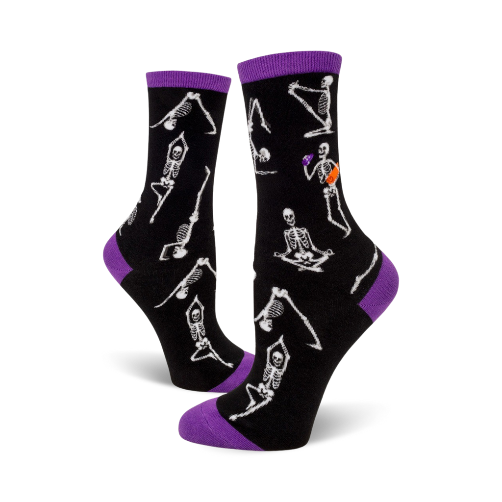 Ever heard of the saying 'dead men tell no tales'? Well, that couldn't be further from the truth if they were wearing these socks! Who needs a yoga instructor when you have a skeleton in a crow pose or downward-facing dog? With these Skeleton Yoga socks, the living dead will be stretching it out and striking a pose instead of haunting your dreams!