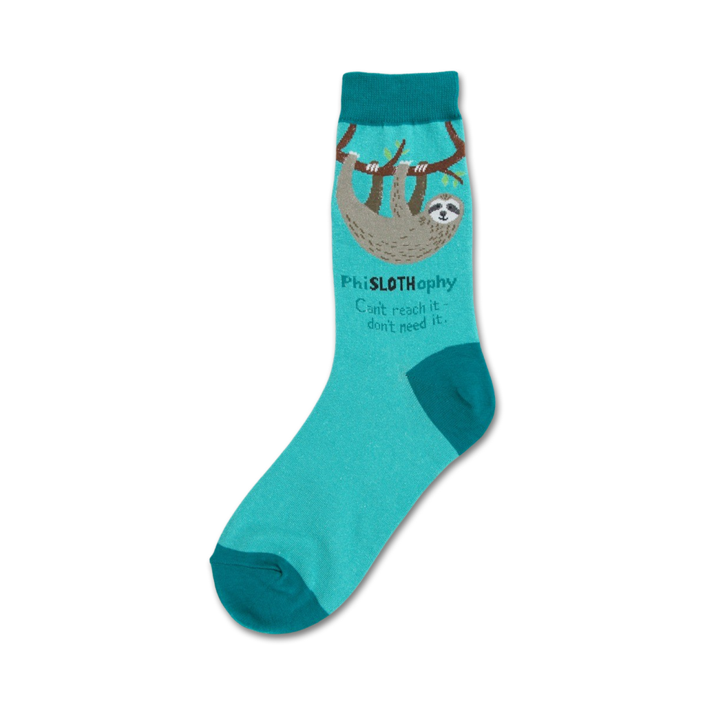 Sloth in a blue mood! Add some zzz's to your feet with these Sloth socks while you ponder PhiSlothophy. Warning: these socks may make you want to slow down and hang out. Their cotton material is breathable, stretchy, and ridiculously comfortable, so don't be surprised if you find yourself wanting to spend all day in these sloths!