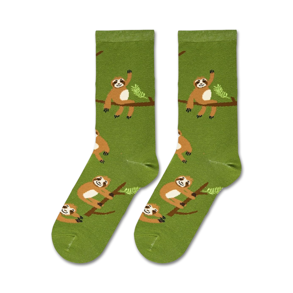 These Sloth Socks are just hanging around! But in all seriousness, these womens crew socks have a pattern of sloths hanging from branches. They're the perfect everyday sock and a great gift idea for any sloth lover! So, hang loose, and let your feet do the talking. Don't be a bore-ing sloth, get a pair of these socks today!