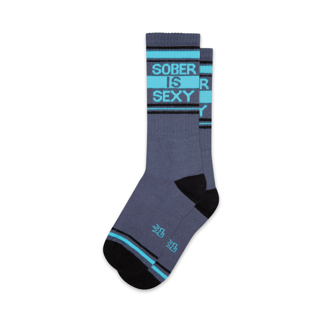 Our Sober Is Sexy Socks are the perfect way to show your commitment to sobriety in a fun and lighthearted way. These gray socks feature the words "Sober Is Sexy" in bold blue letters on the leg, and are sure to turn heads wherever you go. The black heel and toe add a touch of sophistication, while the two thin blue stripes around the top keep things fun and casual. Whether you're rocking them at a recovery meeting, a party, or just running errands, these socks are sure to make a statement.