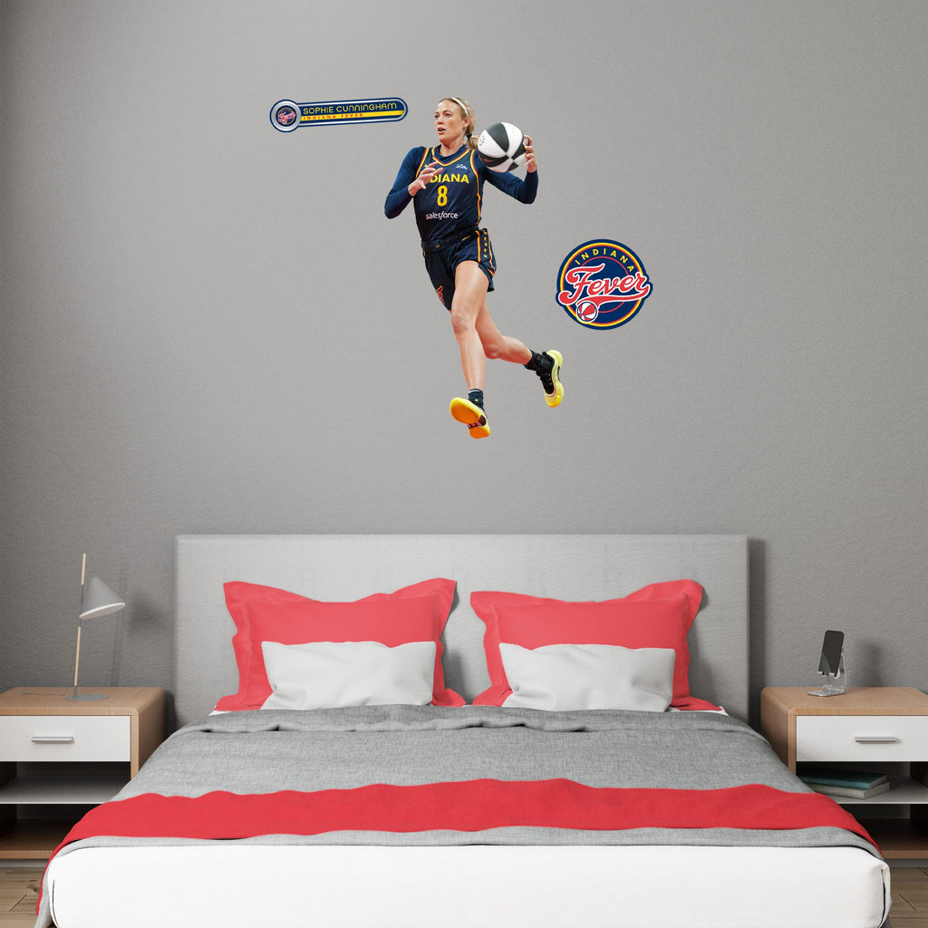 Elevate your space with the dynamic energy of Sophie Cunningham and the Indiana Fever. This vibrant, reusable vinyl wall decal captures the intensity of the game, bringing the court to your walls. Made from durable, fade-resistant vinyl, it’s designed to last, with a gentle adhesive that won’t damage your walls. Perfect for bedrooms, sports rooms, or any fan space, this decal lets you celebrate your team spirit in style, wherever and whenever inspiration strikes.