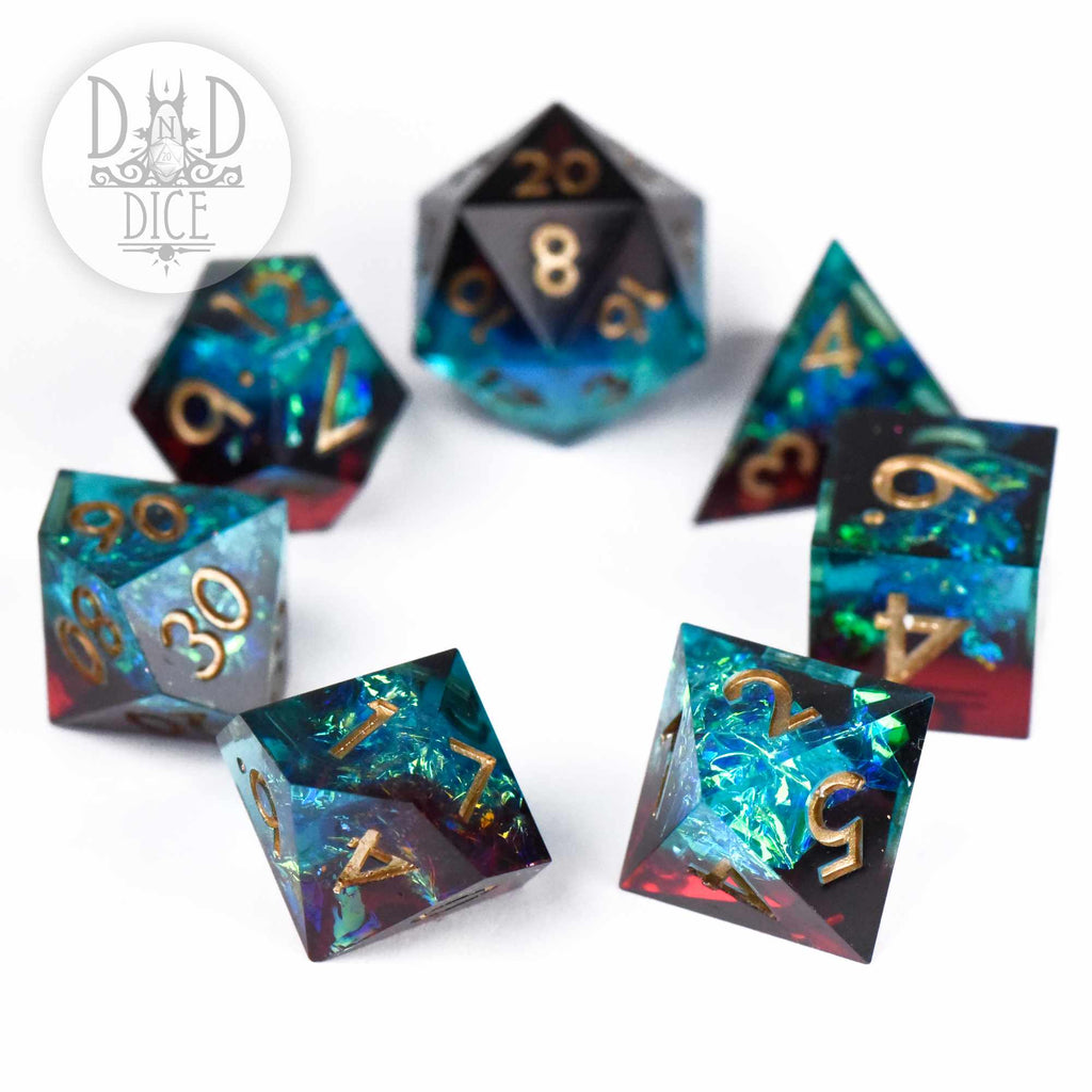 Note: These dice are handmade, hand-polished, and hand-painted. They are very sharp. Please handle with care. Handmade dice may not be 100% perfect, and may have tiny imperfections.