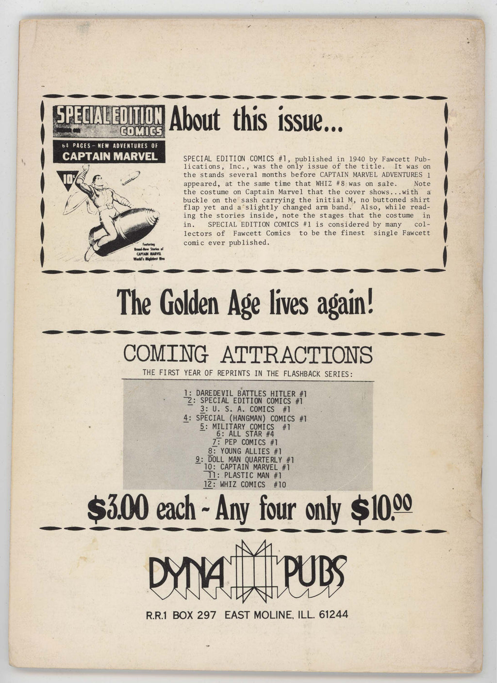 Special Edition Comics 1 Flashback 2 Dynapubs 1973 FN Captain Marvel Shazam