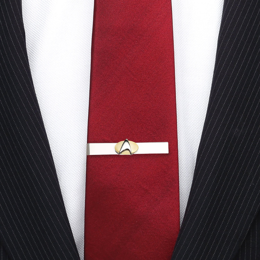 Live long and prosper with this set of two-toned Delta Shield cufflinks and sliding tie bar. Wear your love for Star Trek on your sleeve (and your tie) and pair with one of our exclusive Star Trek themed 100% silk ties. Officially licensed by CBS Studios Inc.