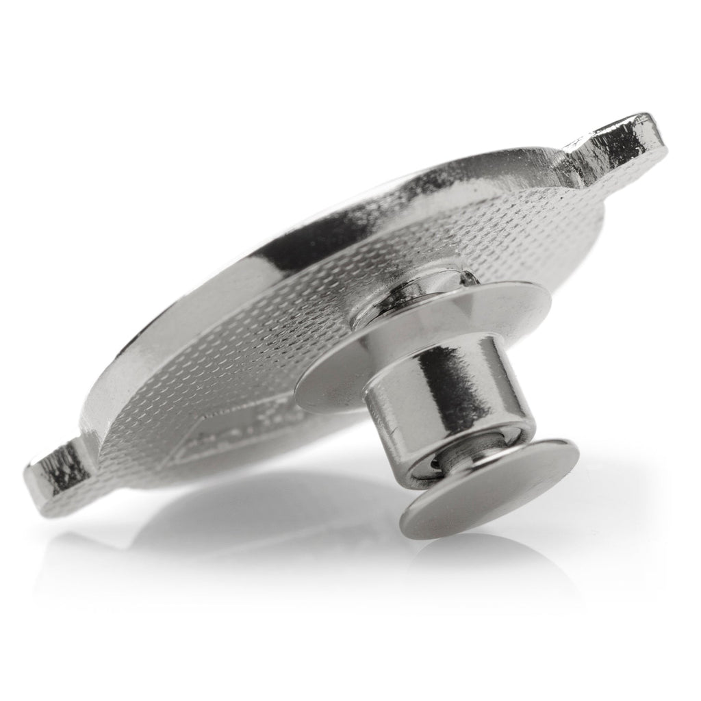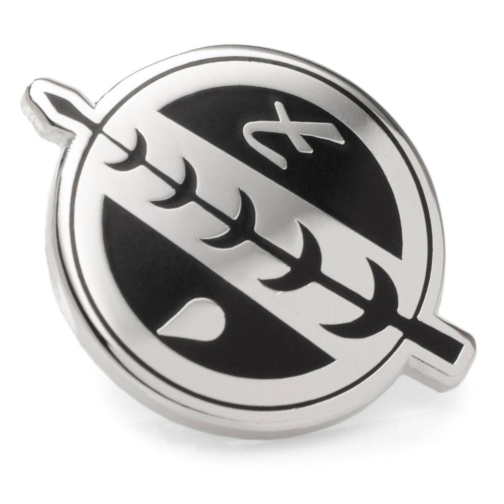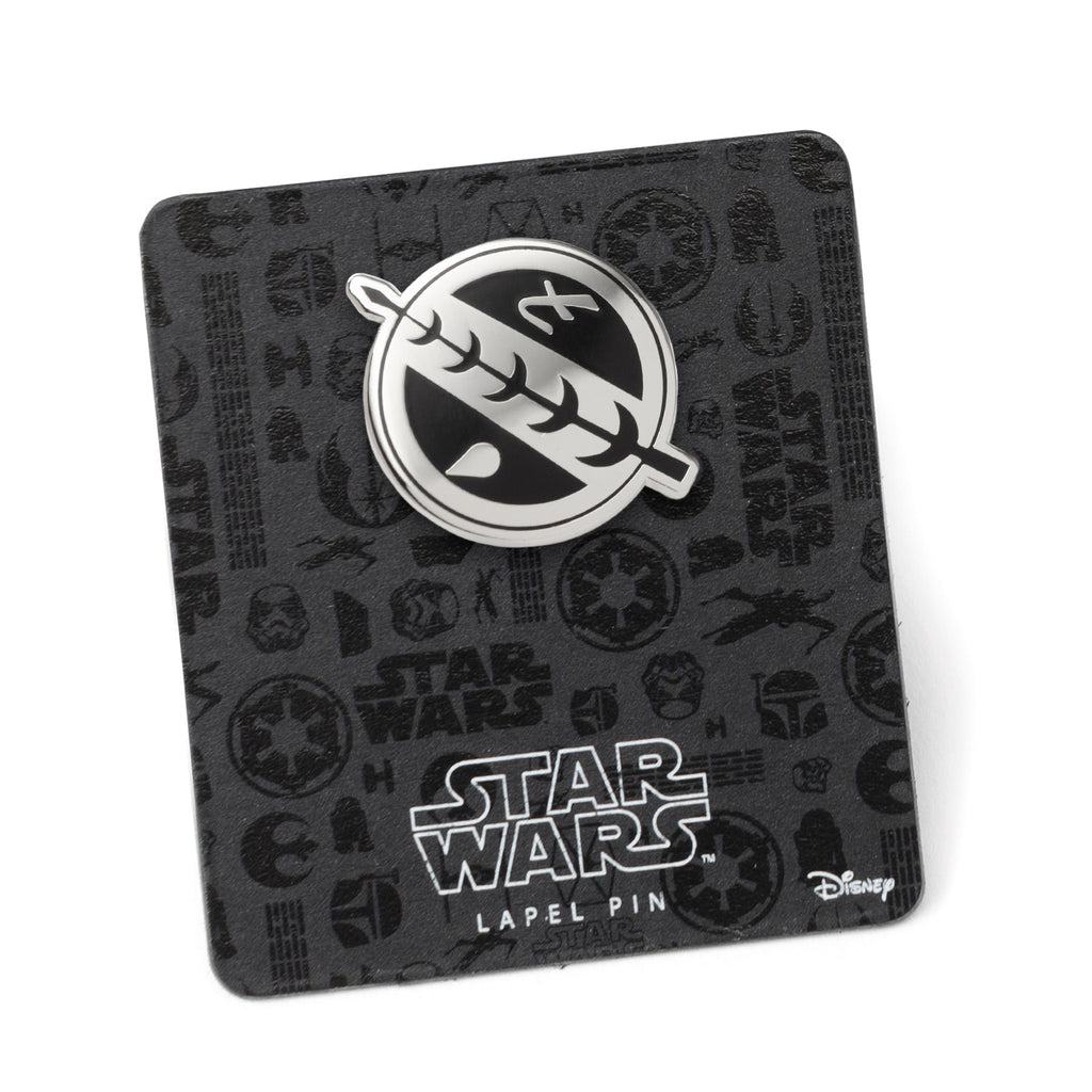 Our Boba Fett Crest Lapel Pin features the family crest of the iconic bounty hunter Boba Fett. The crest was adopted from Jango Fett's mentor, Jaster Mereel. Features a deluxe clutch backing to keep the pin in place. Experience the Way of the Mandalore with our expertly crafted plated base metal lapel pin. It's built to withstand the challenges of bounty hunting across the galaxy, infused with the honor of Mandalorian creed, and ready to accompany you on interstellar hunts. Officially licensed by LucasFilm LTD.