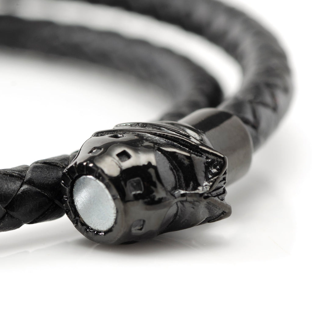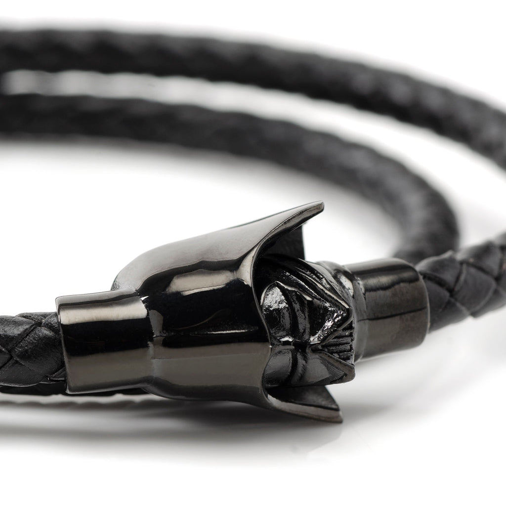 Recapture that iconic moment in Return of the Jedi when Darth Vader's helmet is removed with this unique leather and stainless steel double-wrapped bracelet. To open the clasp, simply pull apart the helmet to reveal a clever magnetic closure which securely seals shut when you're ready to wear it again. Experience the Dark Side with our expertly crafted stainless steel bracelet. It's built to withstand the tests of galactic events, infused with the Sith, and ready to accompany you on interstellar orders. Officially licensed by LucasFilm LTD.