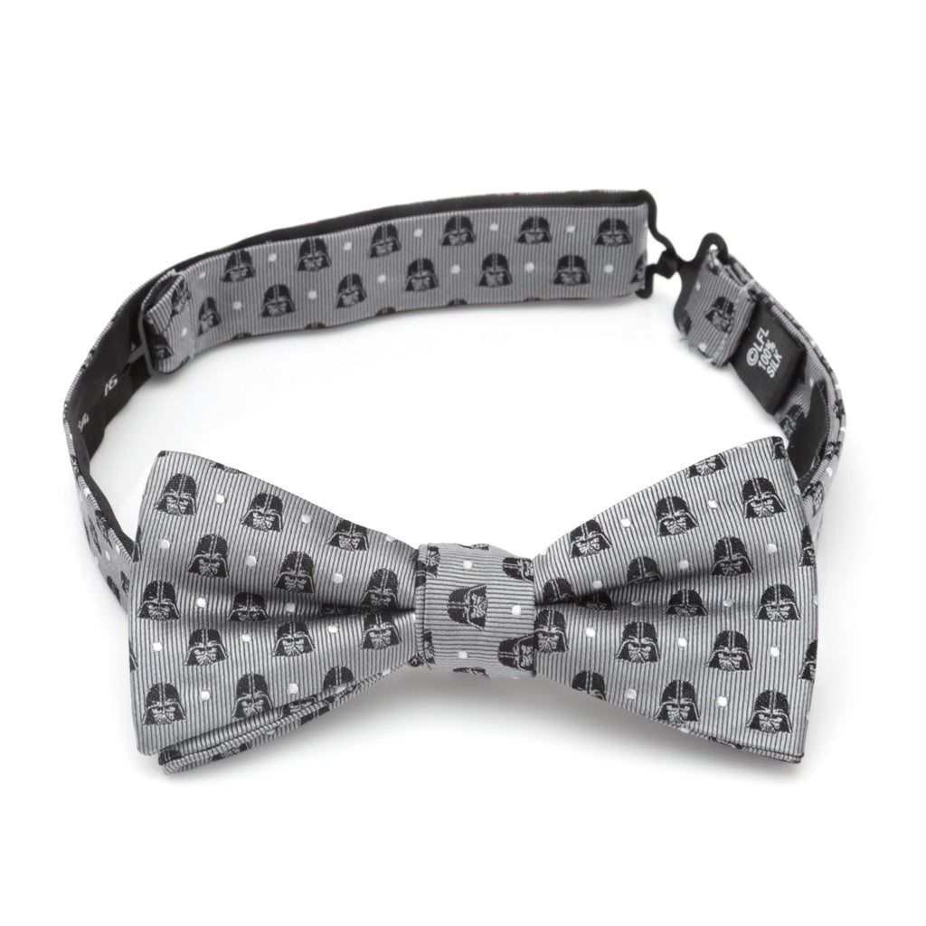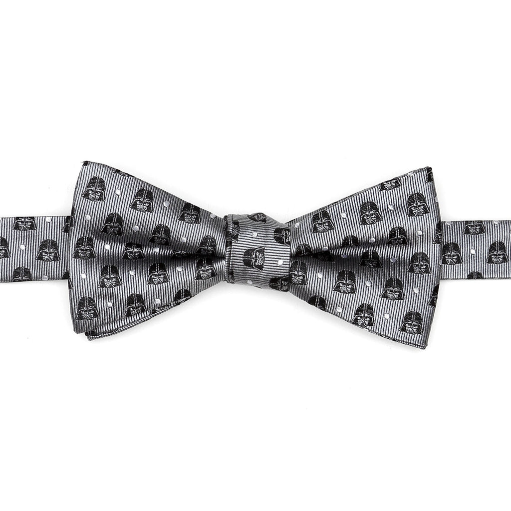 Smart for office, subtly Star Wars. If you're looking for the perfect accessory to complete your formal wardrobe, look no further than our Darth Vader Gray Dot Bow Tie. Featuring rows of black helmets intersected with tiny silver dots on a gray base, it's a fun way to blend your love for Darth Vader with looking stylish. This bow tie is pre-tied for ease of dress and will maintain its shape thanks to being crafted with durable yet soft 100% Silk. Can be worn alone or paired with any of our Darth Vader products. Officially licensed by Lucasfilm LTD.
