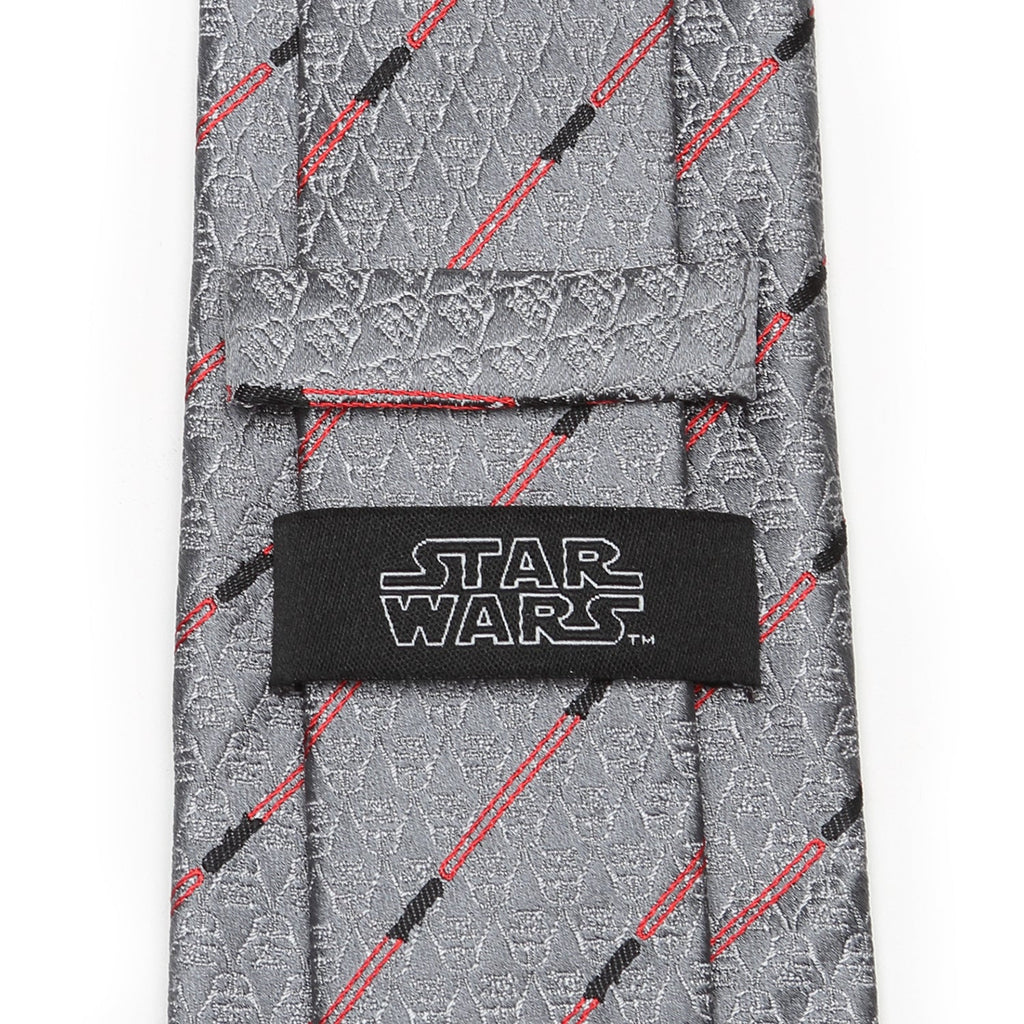 Expertly woven using gray, black, and scarlet red threads, this 100% silk iridescent tie features a series of bold lightsaber images set against rows of discrete Darth Vader helmets. Rule the Empire and show your allegiance to the Dark Side. We don't mind. Officially licensed by Lucasfilm LTD.