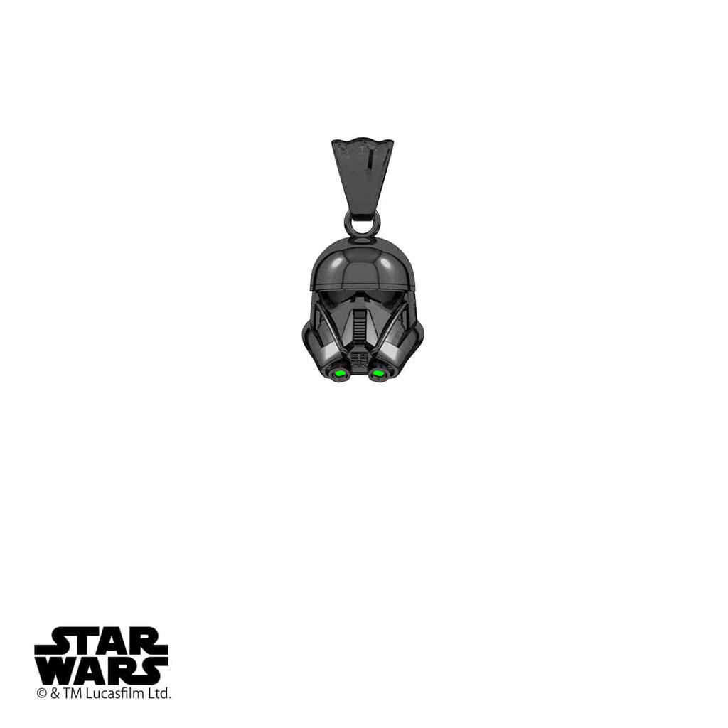 The Death Trooper Pendant features A 3D Style Death Trooper Helmet That Stands 1/2" Tall & 3/8" Wide